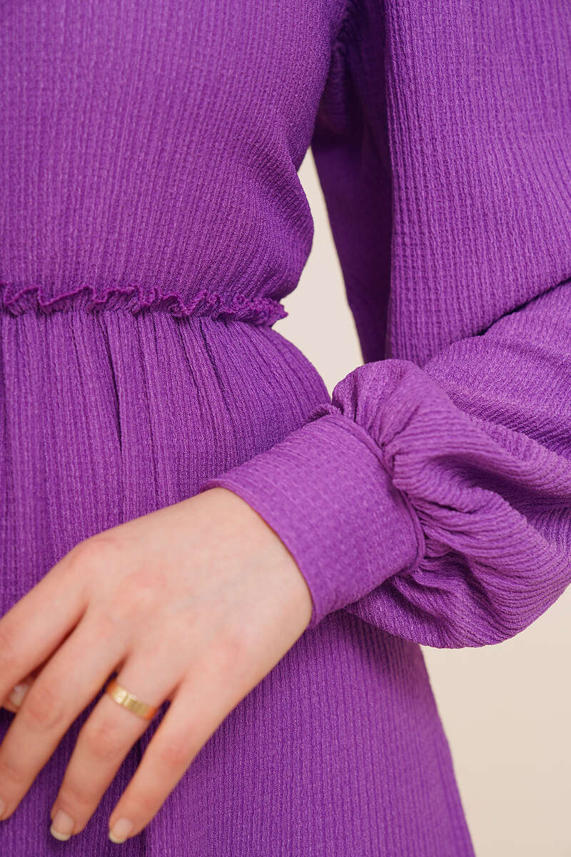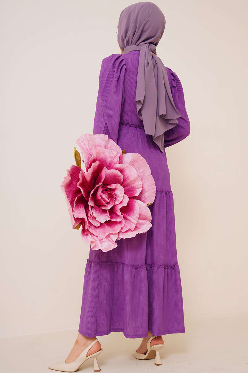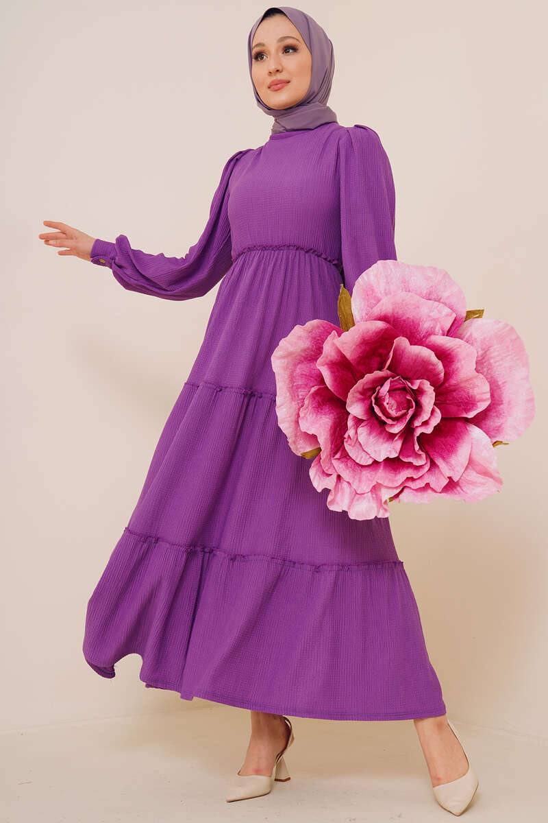 Bel Lastikli Kat Kat Lola Elbise Menekşe