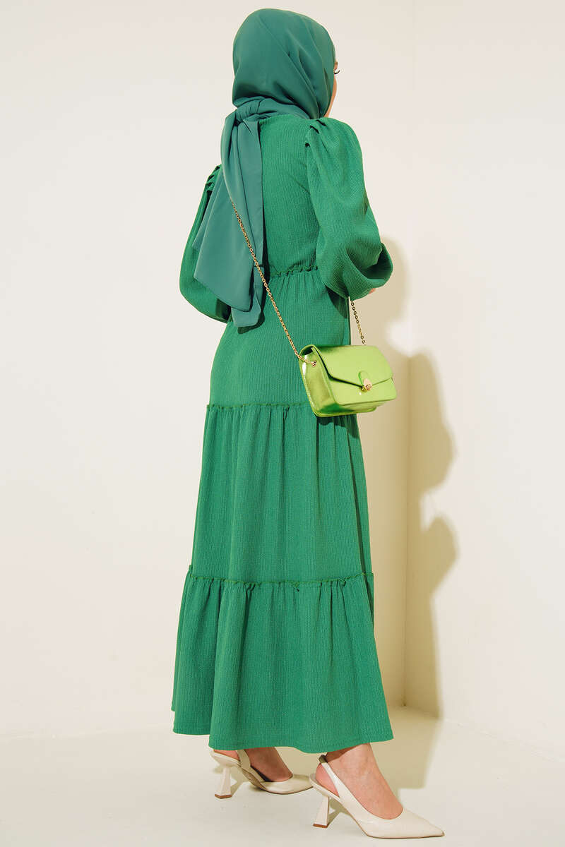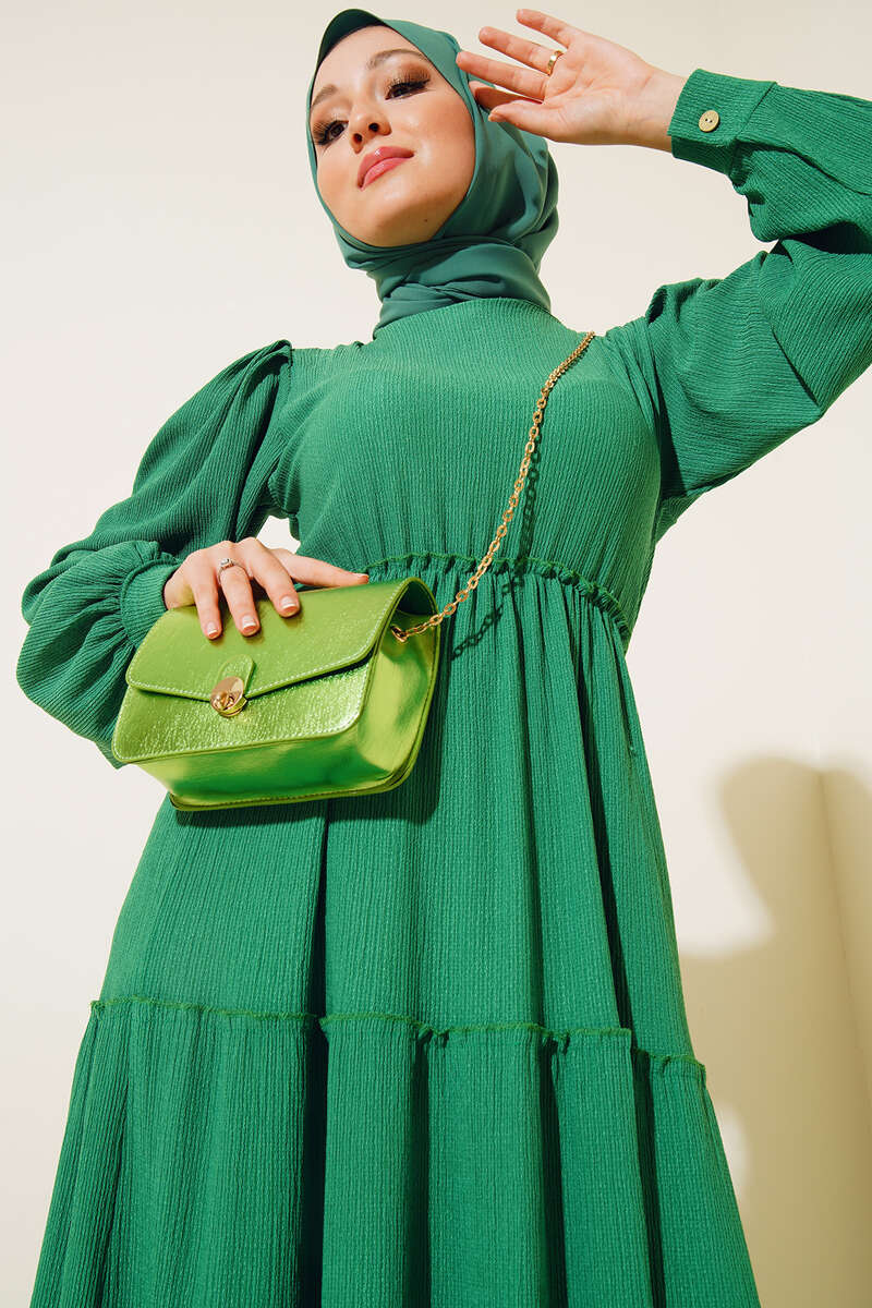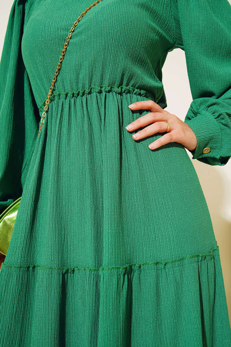 Bel Lastikli Kat Kat Lola Elbise Yeşil