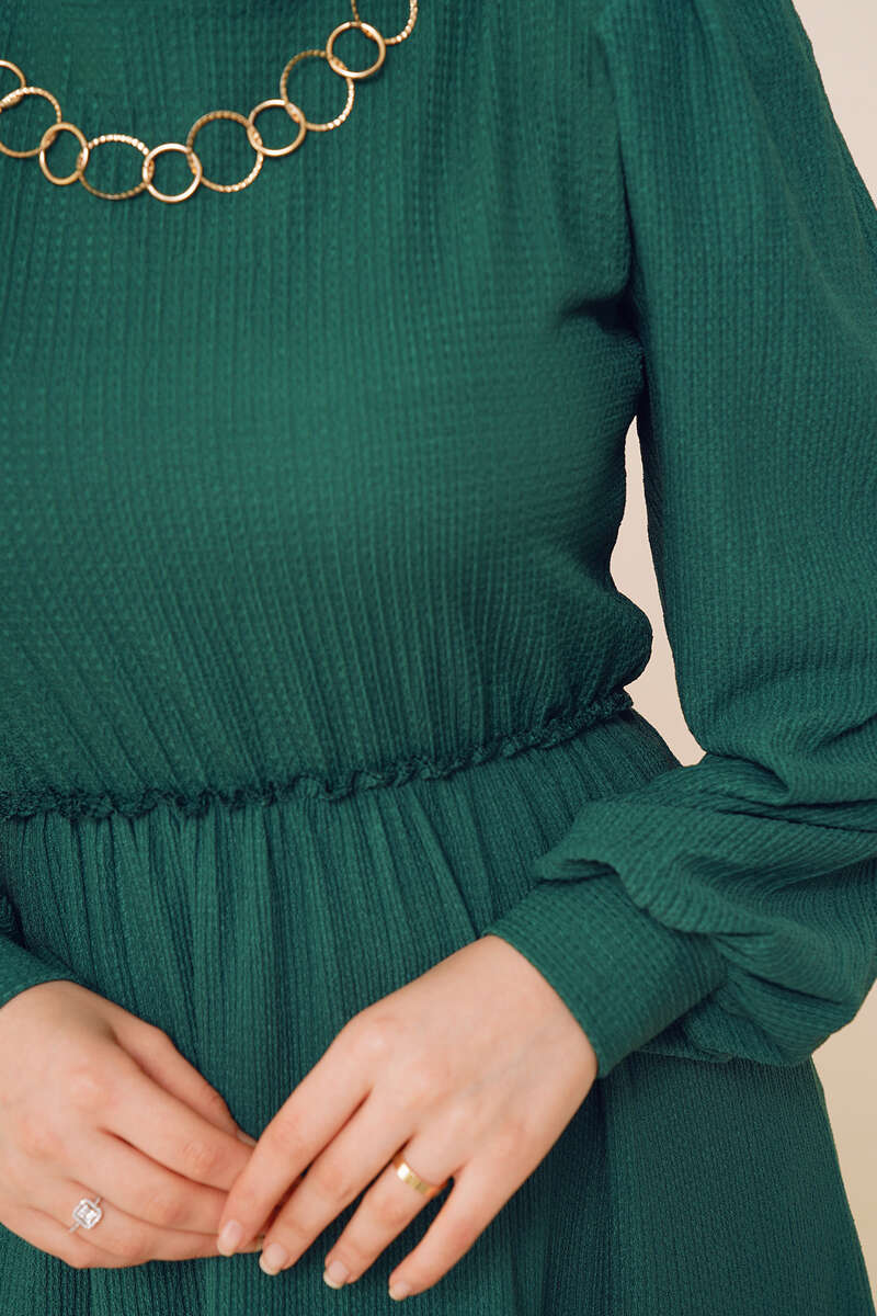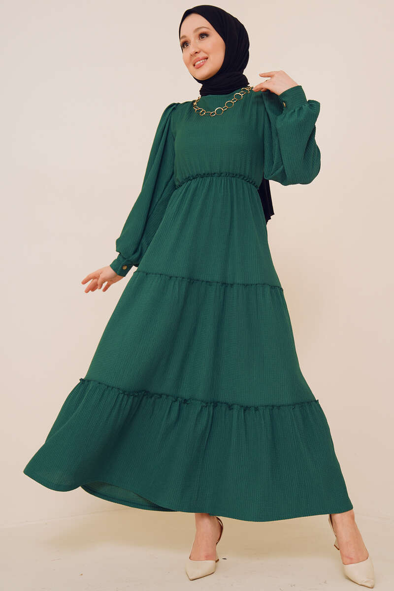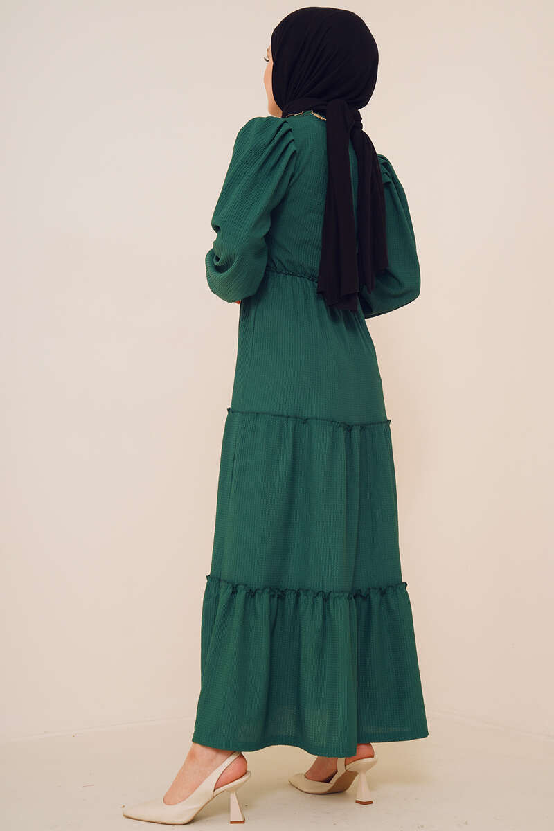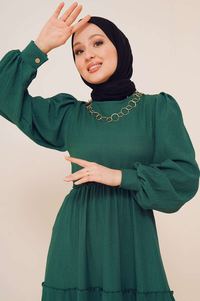 Bel Lastikli Kat Kat Lola Elbise Zümrüt Yeşili