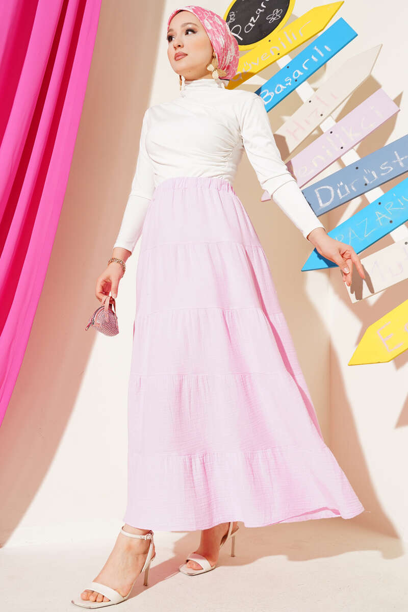 Kemerli Çift Cepli Kloş Etek Taş