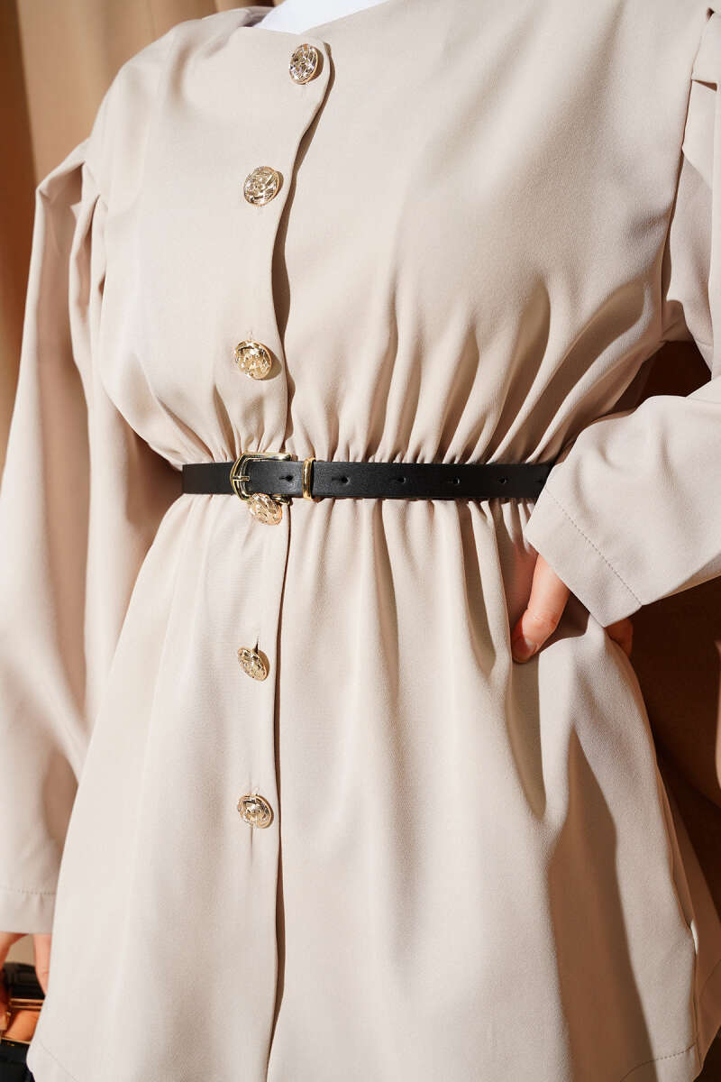 Bel Büzgülü Kemerli Scuba Ceket Ekru