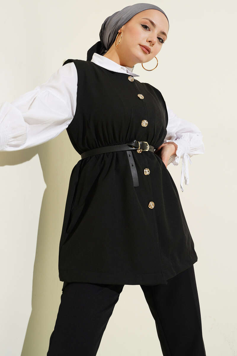 Gold Düğmeli Basic Yelek Siyah
