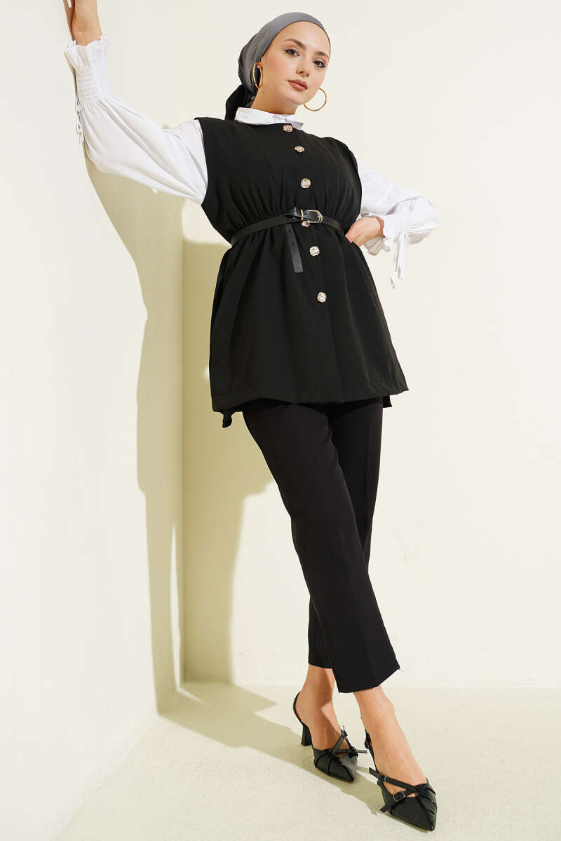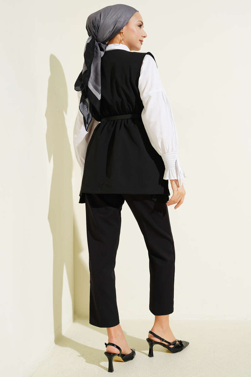 Bel Lastikli Kemerli Dabıl Yelek Siyah