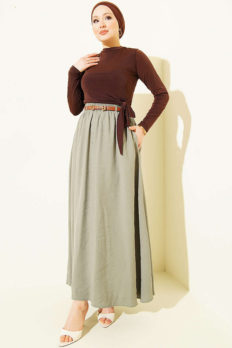 Bel Lastikli Kemerli Tensel Etek Kahve