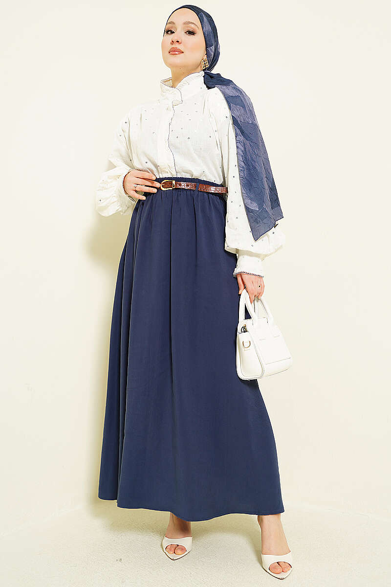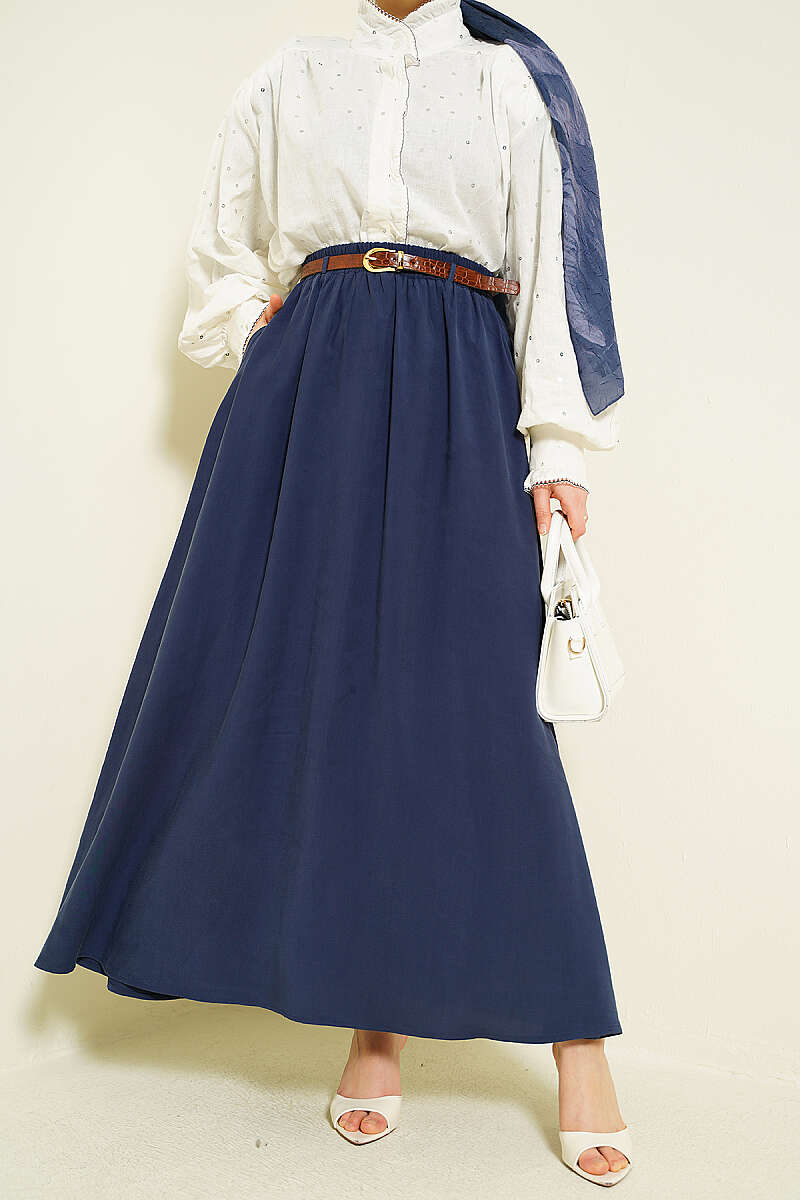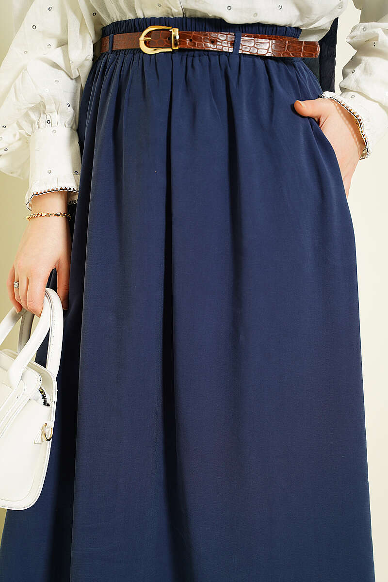 Bel Lastikli Kemerli Tensel Etek Lacivert