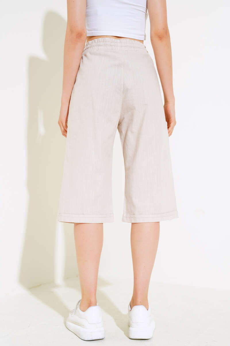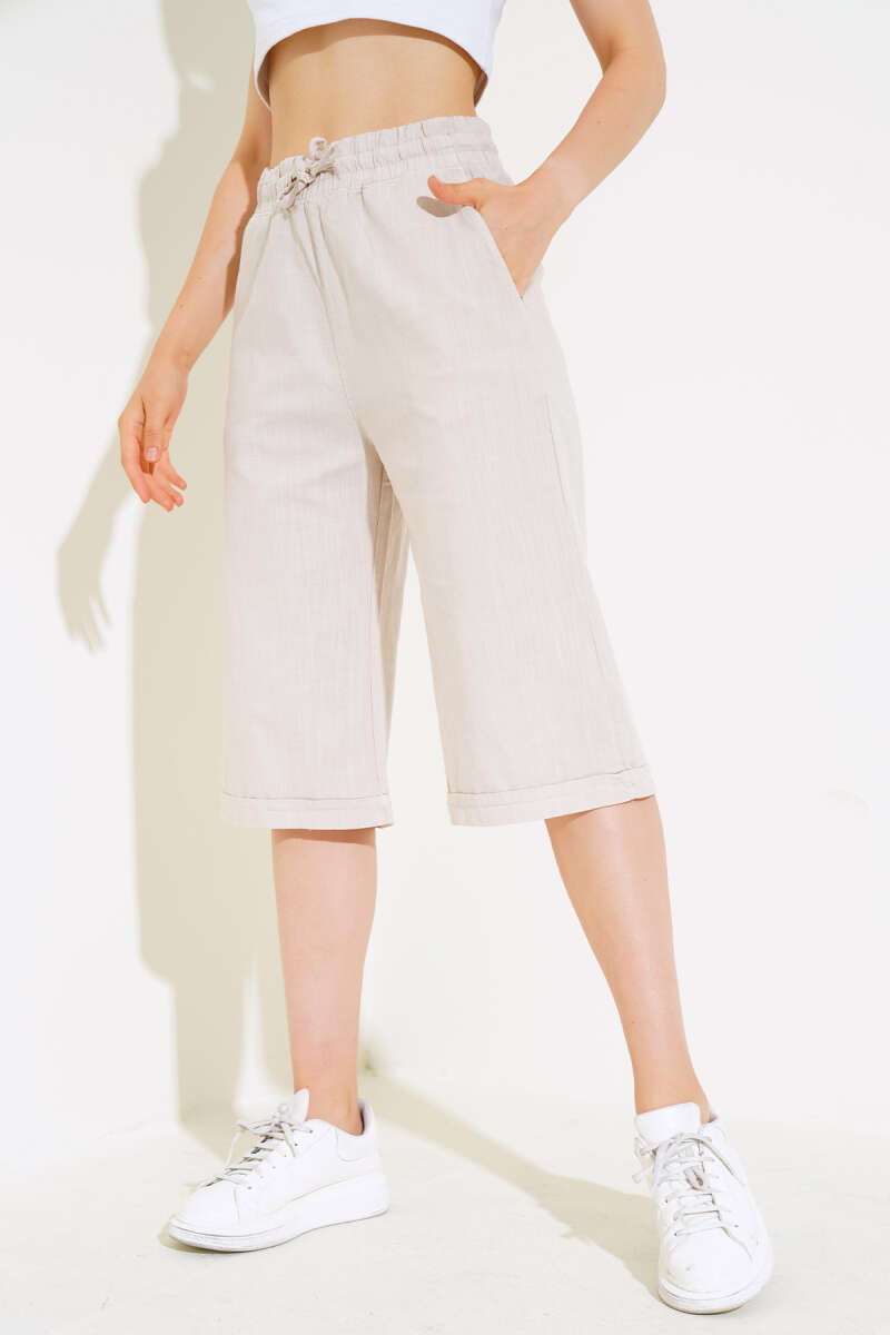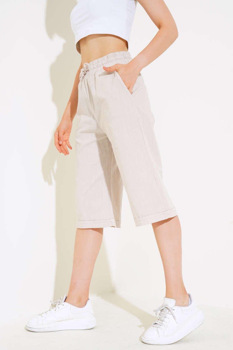 Bel Lastikli Keten Kapri Ekru