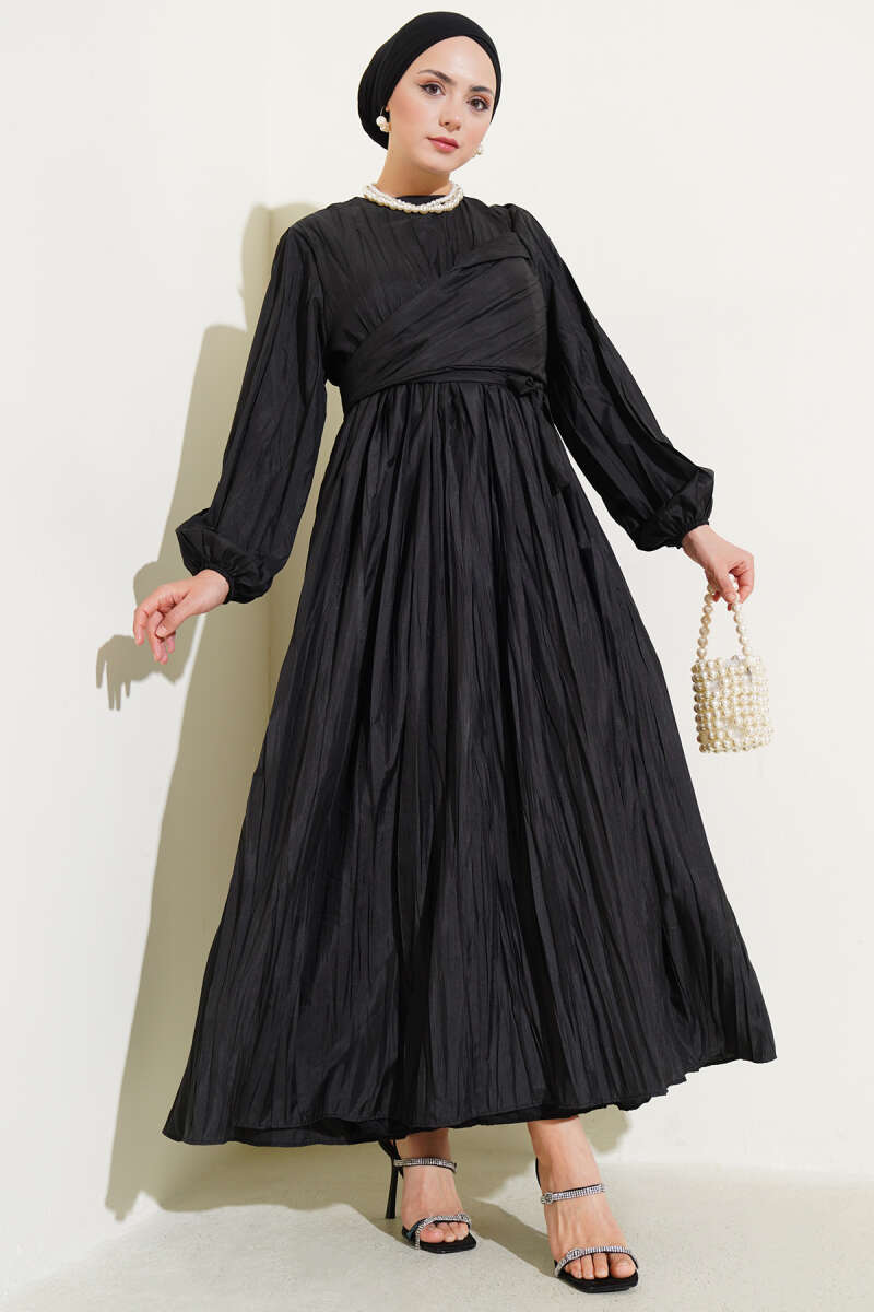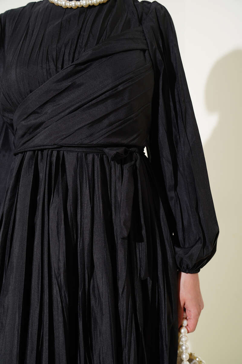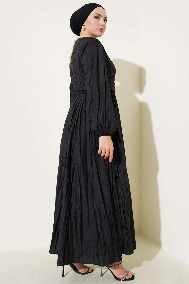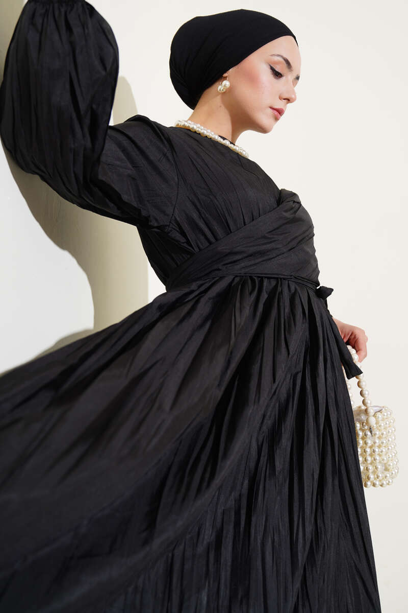 Saç Örgü Kabartmalı Triko Elbise Siyah
