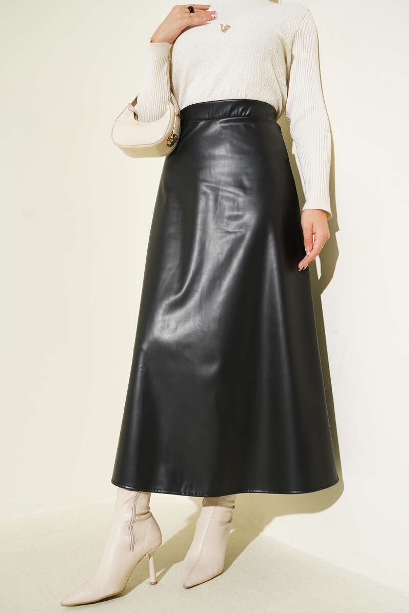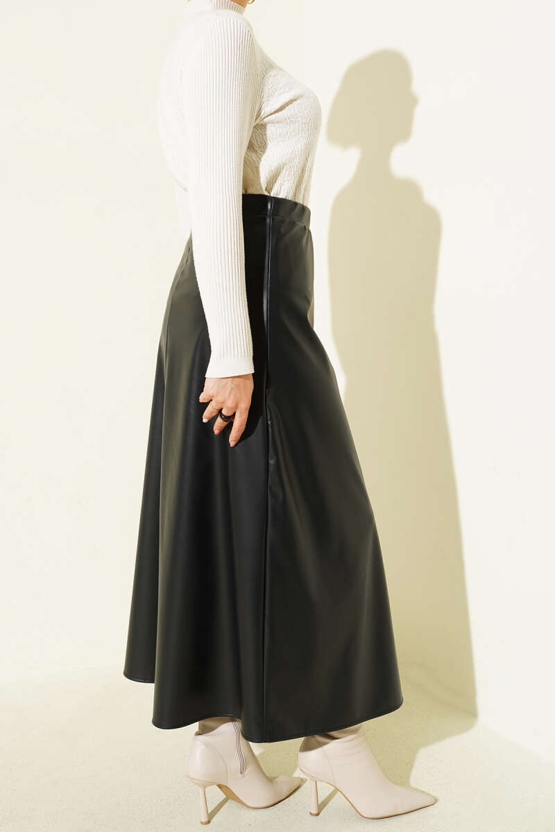 Bel Lastikli Kloş Basic Deri Etek Taba