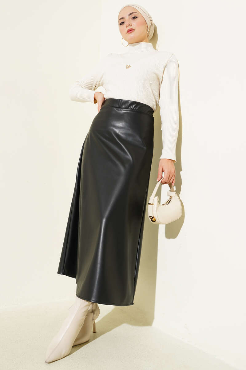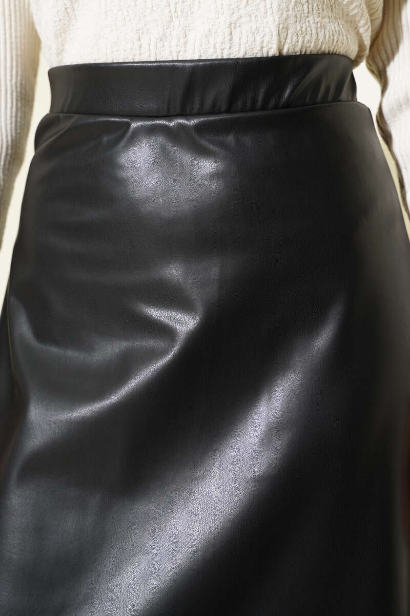 Bel Lastikli Kloş Basic Deri Etek Bej