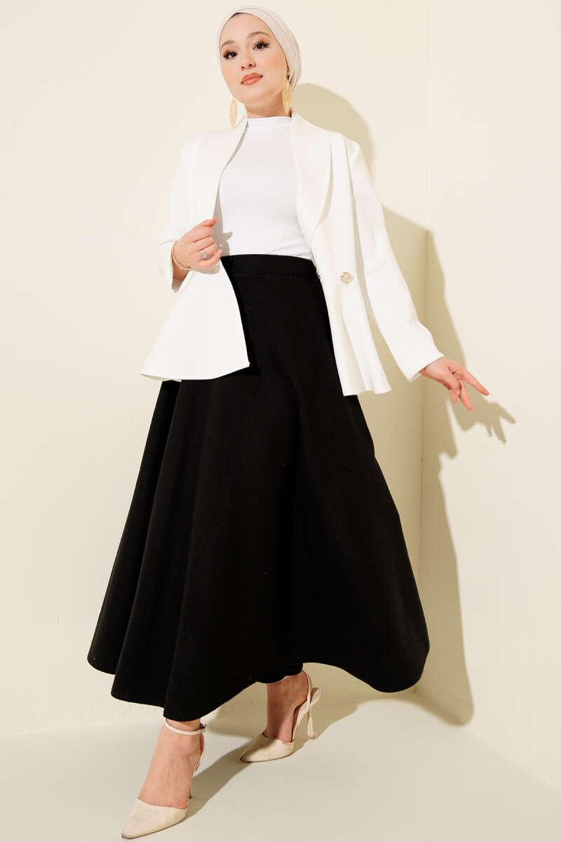 Ekose Desenli Kloş Kaşe Etek Siyah