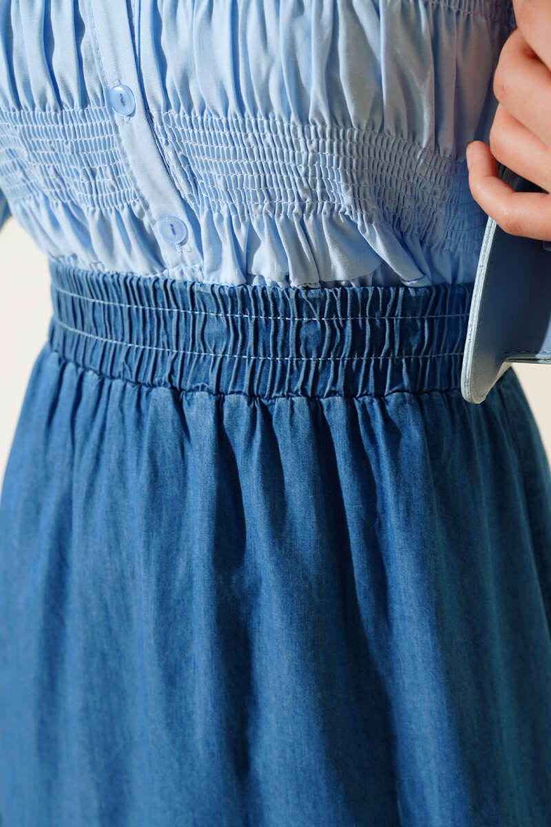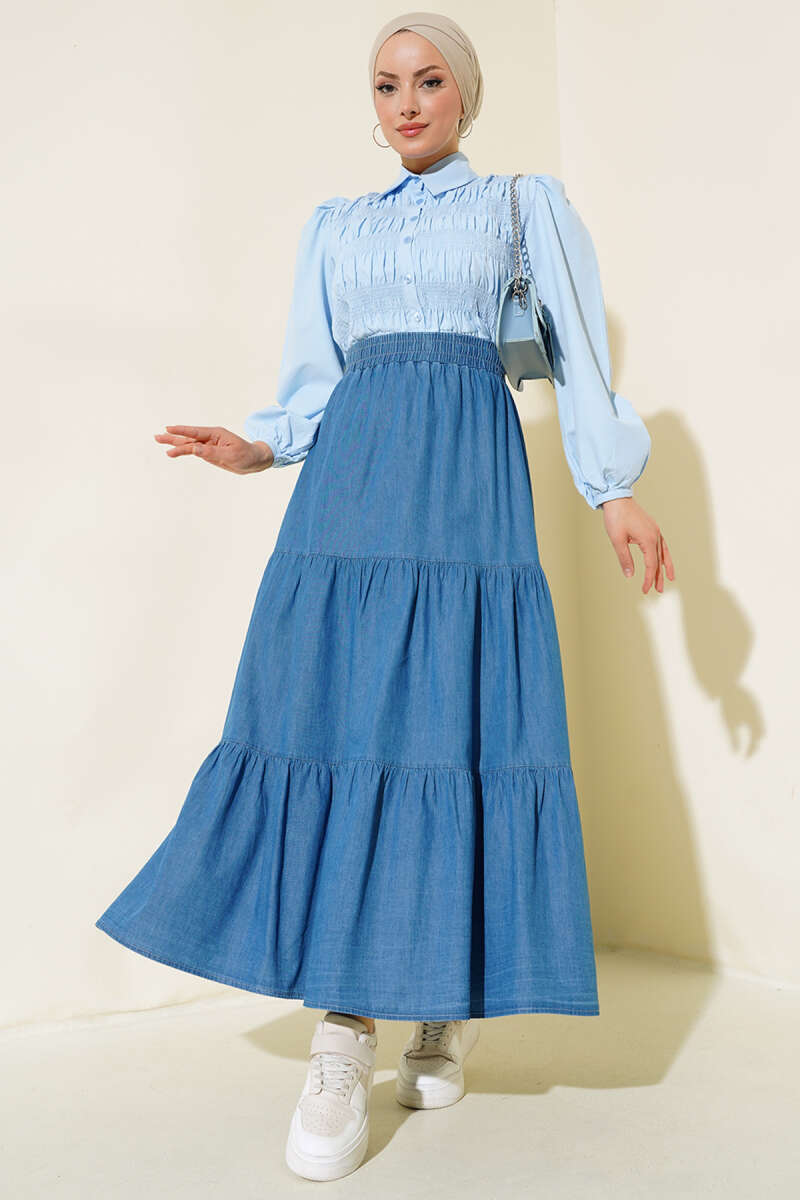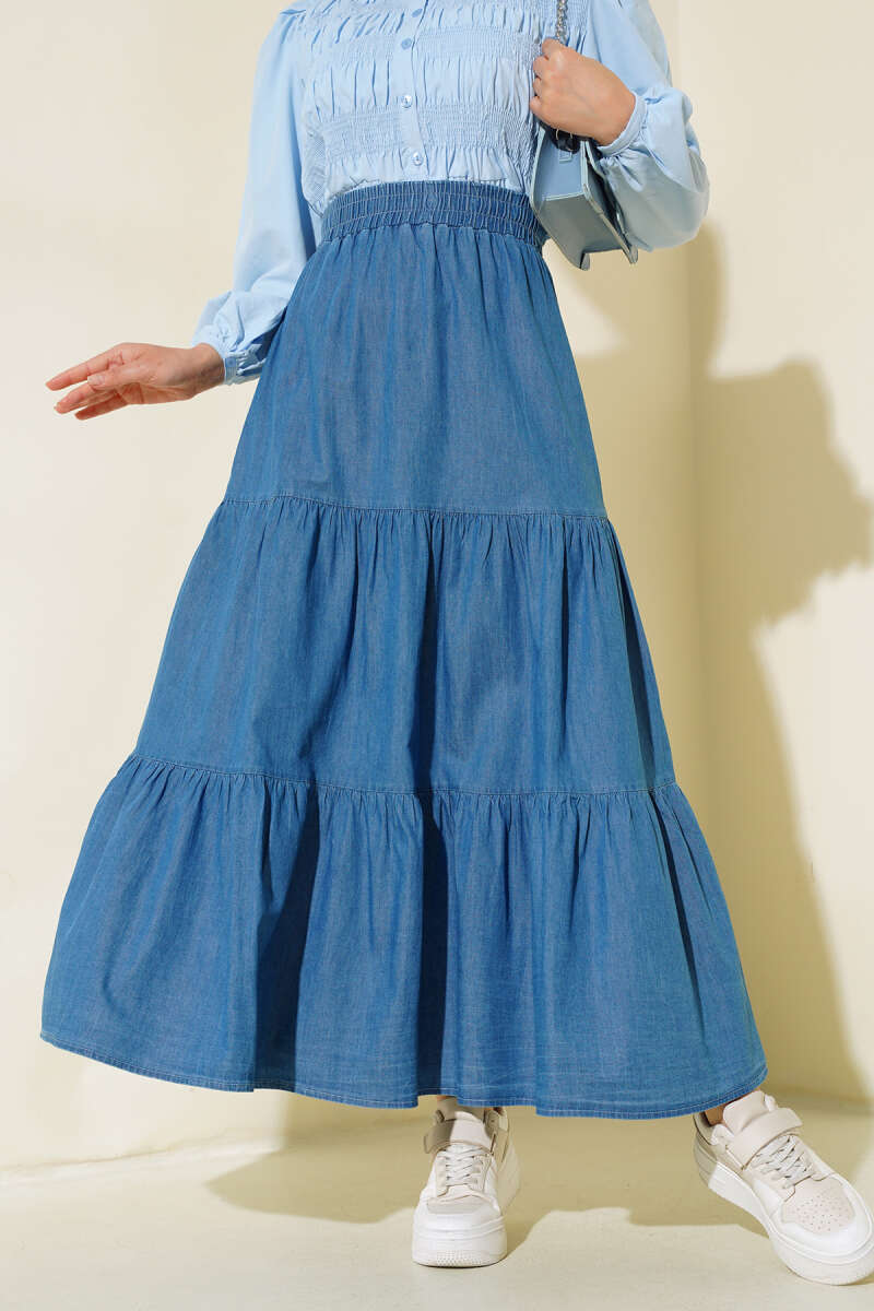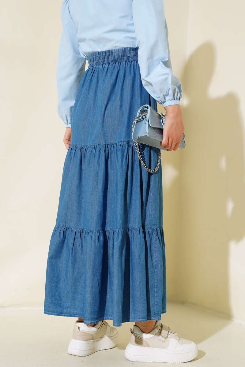 Bel Lastikli Kloş Kot Etek Kot Mavisi