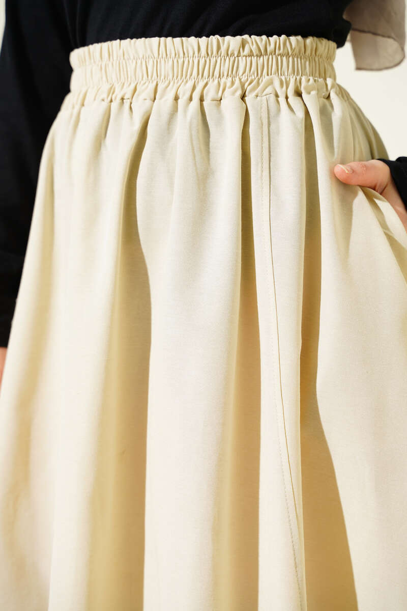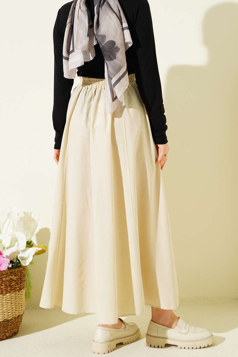 Bel Lastikli Kloş Poplin Etek Bej