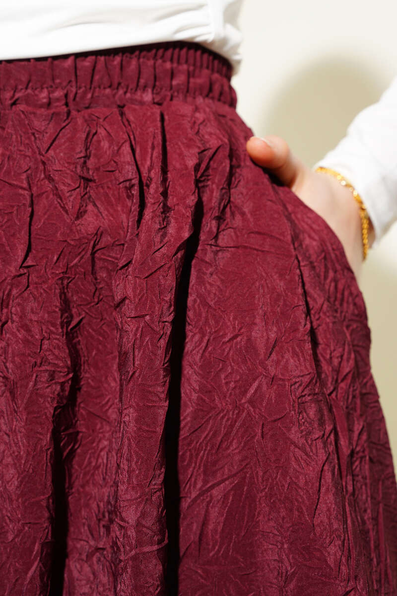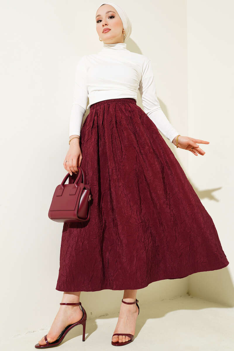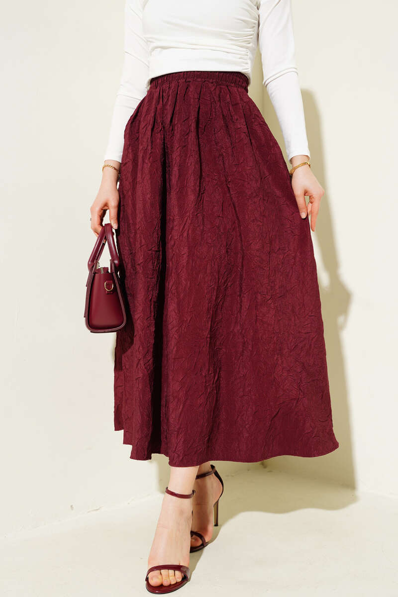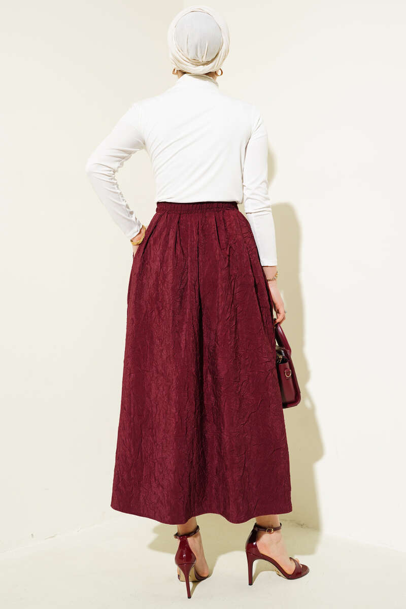 Beli Lastik Detaylı Kloş Scuba Etek Bordo