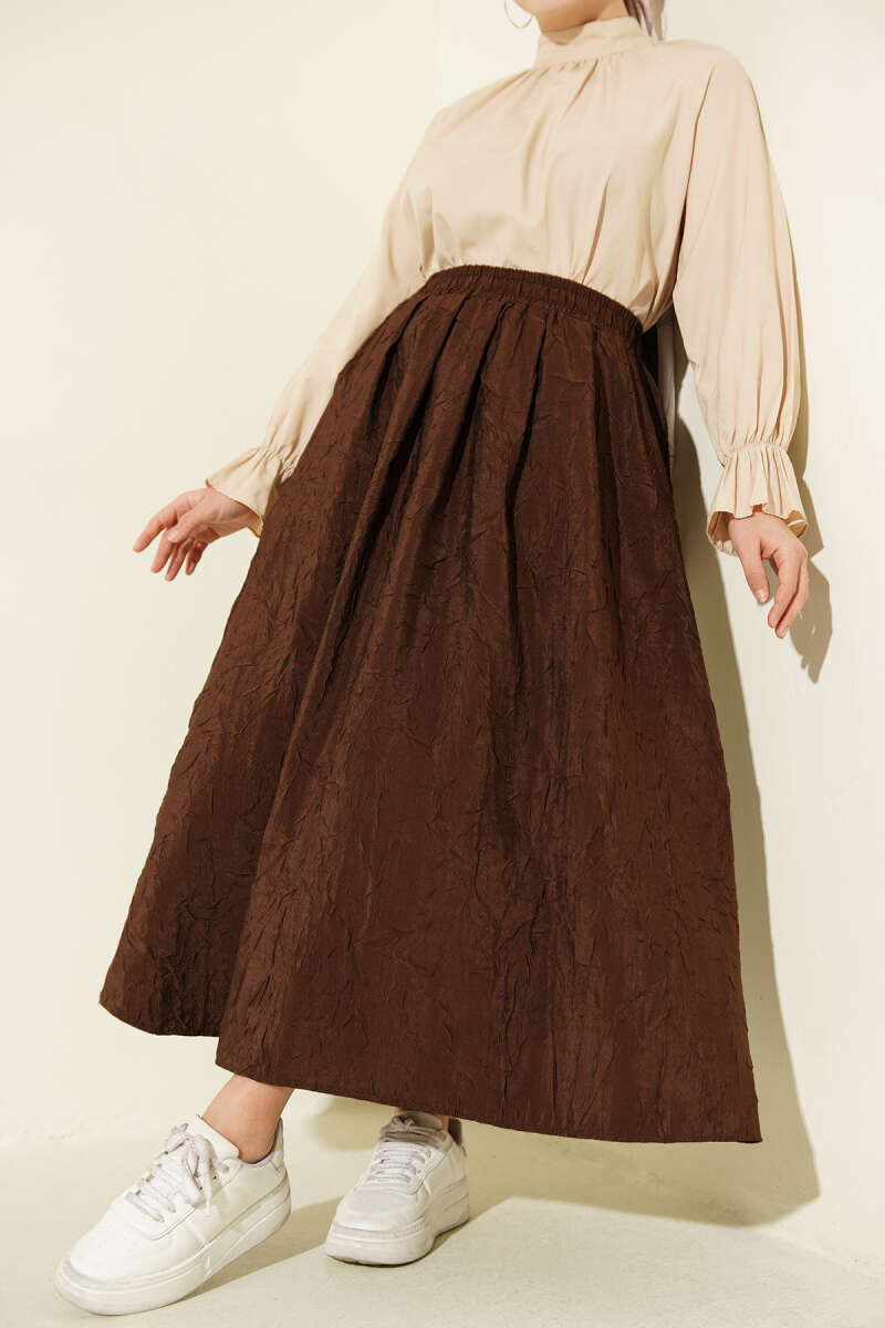 Beli Lastikli Kloş Paraşüt Etek Ekru