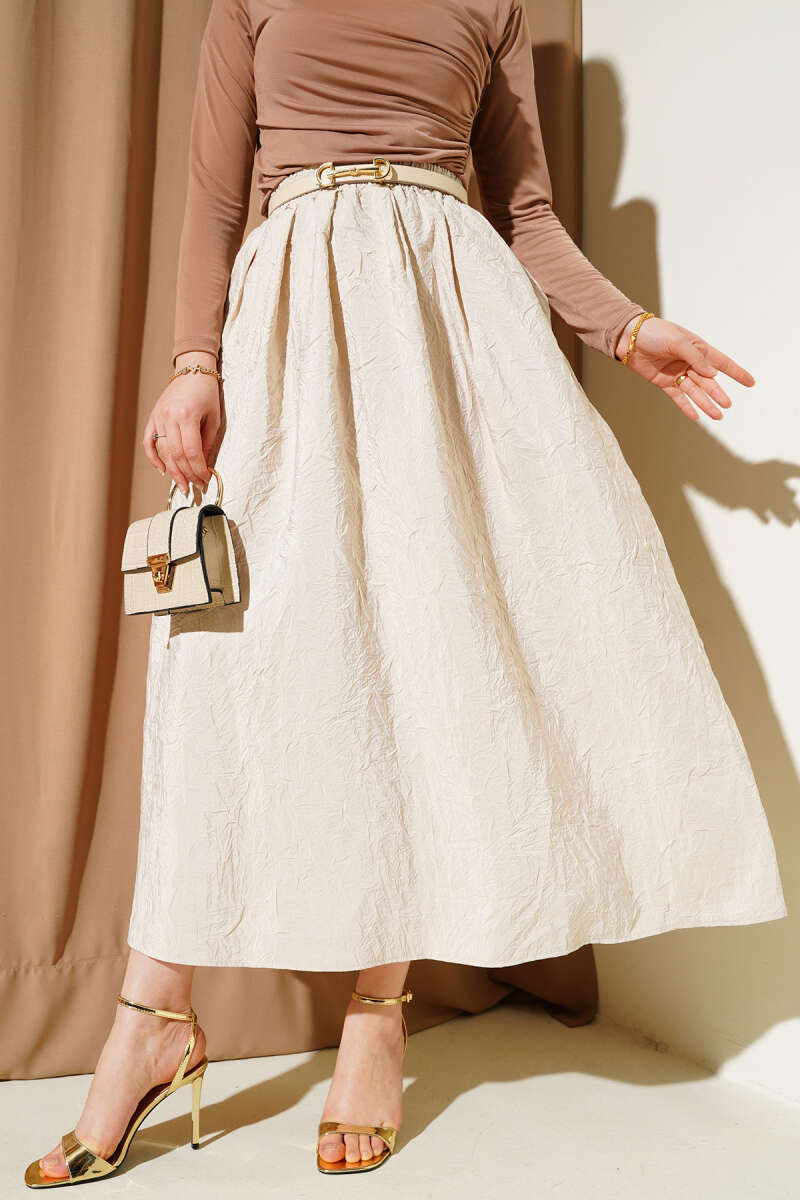 Beli Kemerli Lastikli Pileli Etek Kiremit
