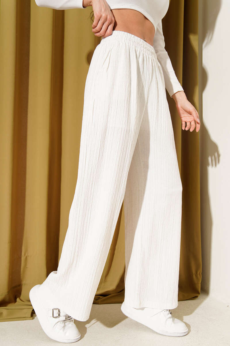 Bel Lastikli Krinkıl Pantolon Ekru