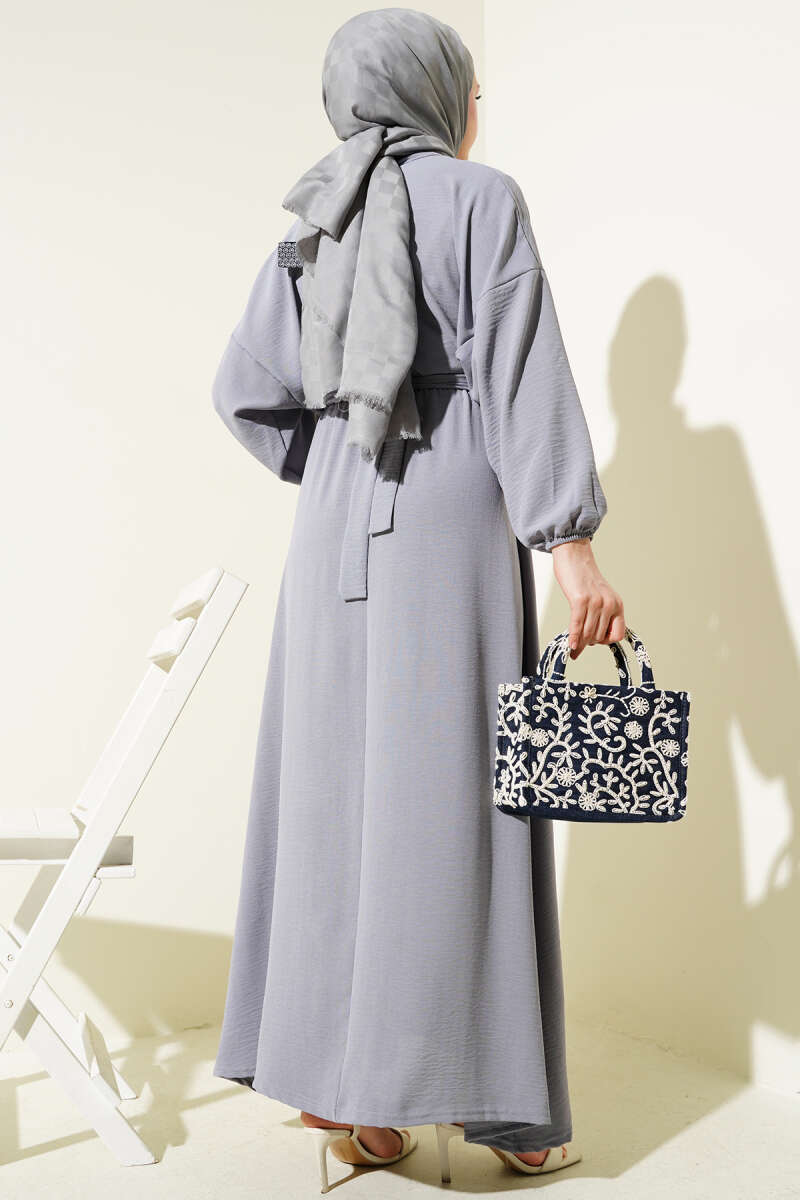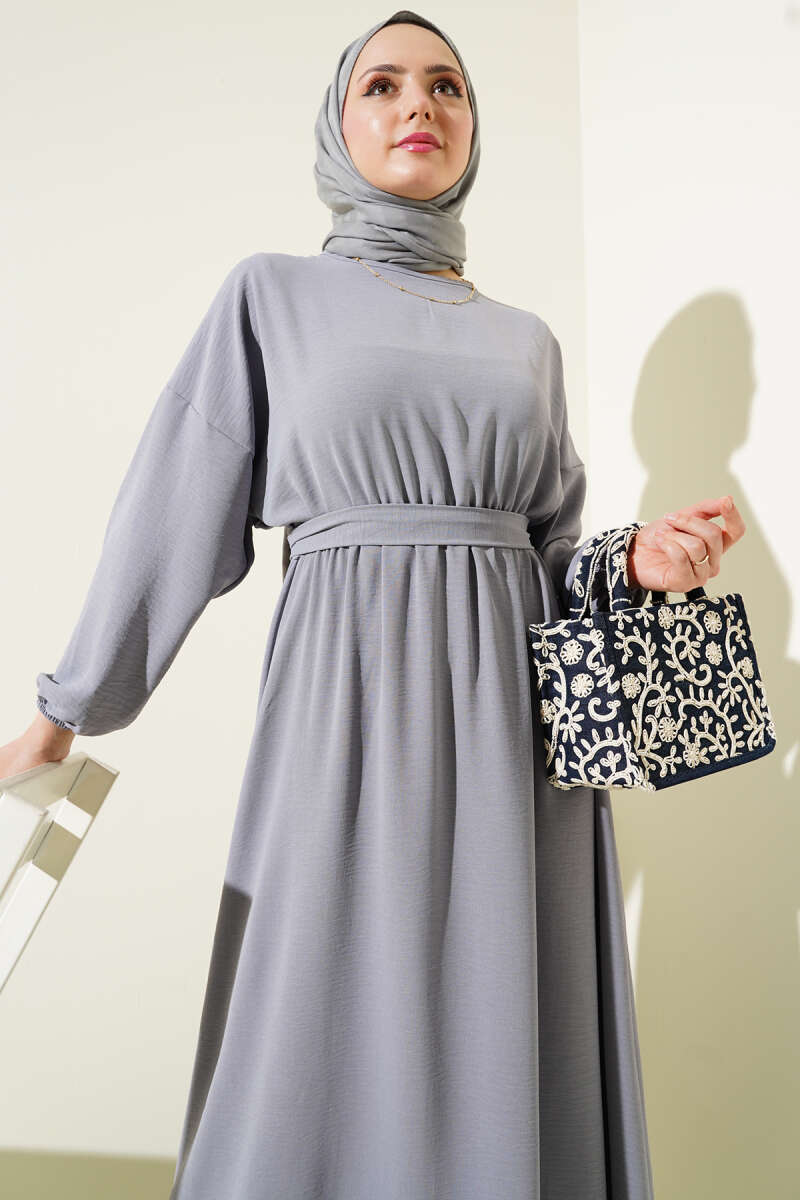 Duble Kol İp Kuşaklı Loyşa Elbise Taş
