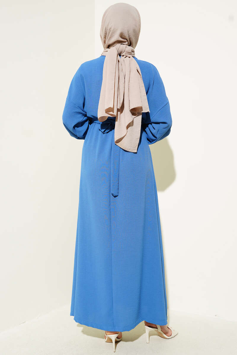 Yarım Yaka Fermuarlı Cepli Kot Elbise Mavi