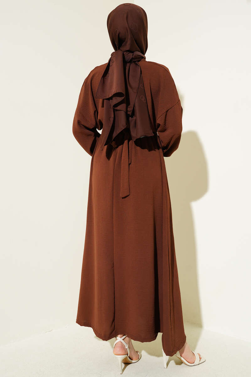 Düğmeli Pelerinli Triko Elbise Takım Kahve
