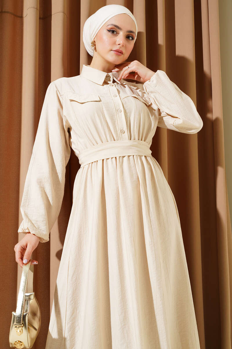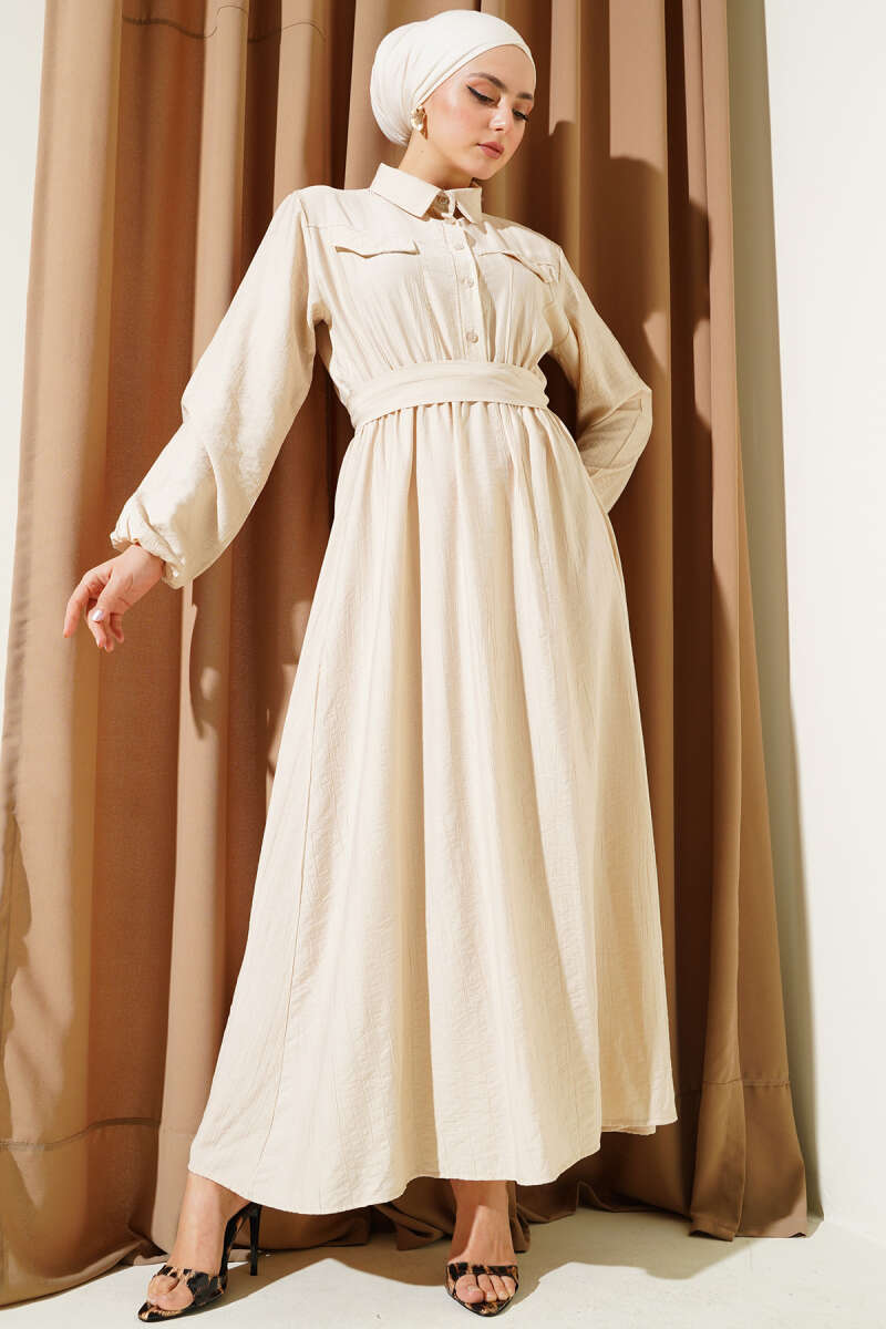 Kolları Fiyonk Detaylı Selanik Elbise Taş