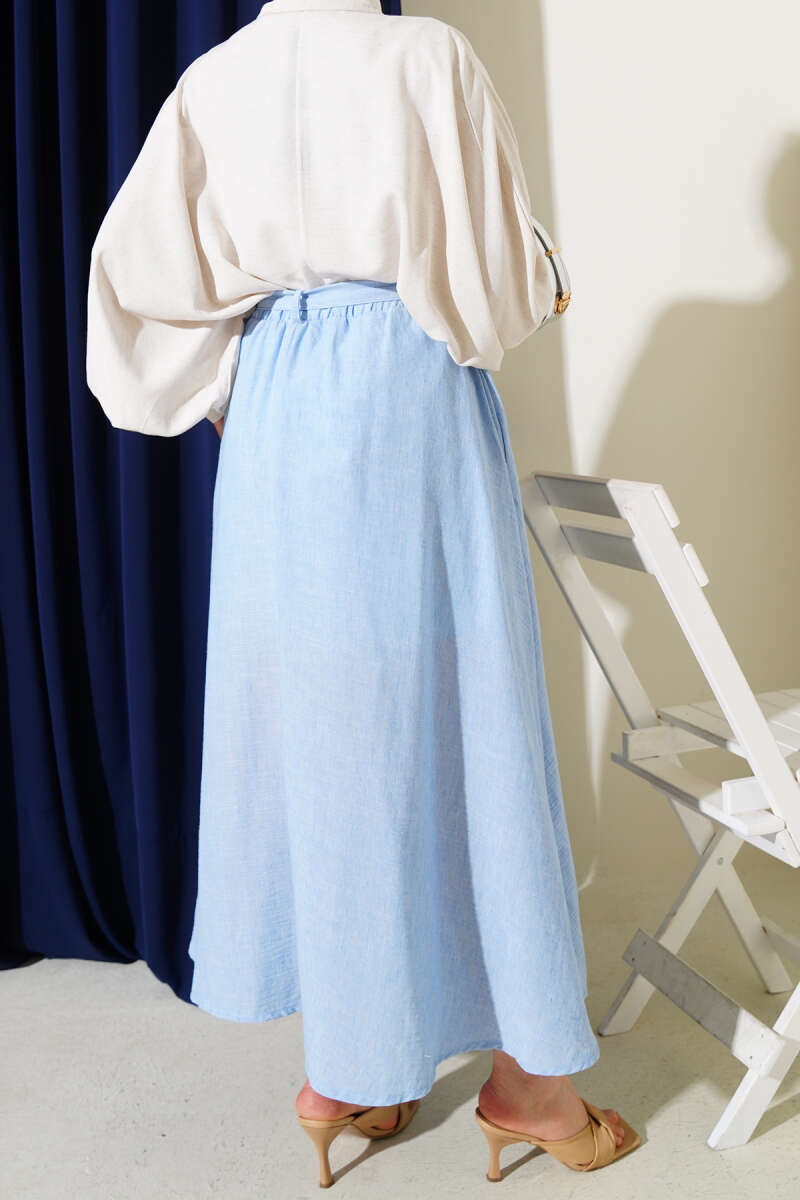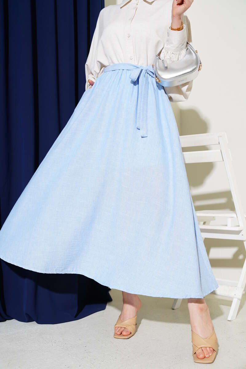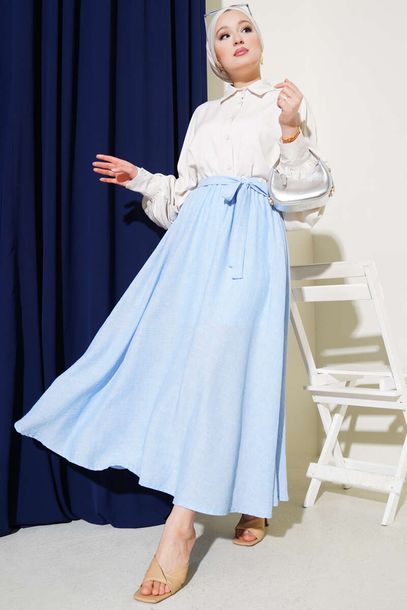 Bel Lastikli Katlı Kot Etek Mavi