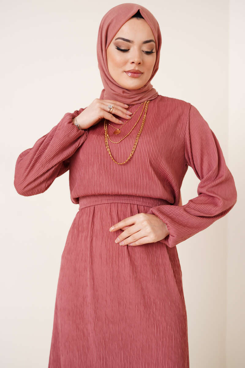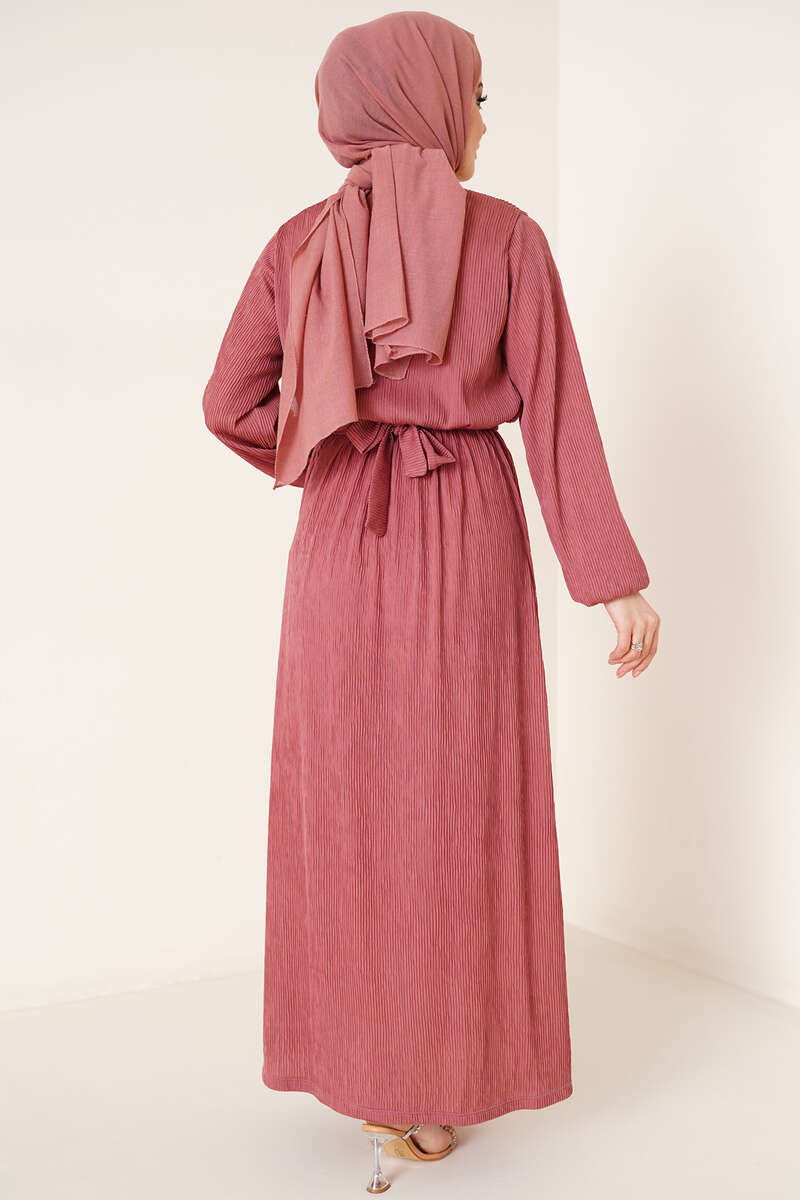 Bel Lastikli Kuşaklı Piliseli Elbise Tarçın
