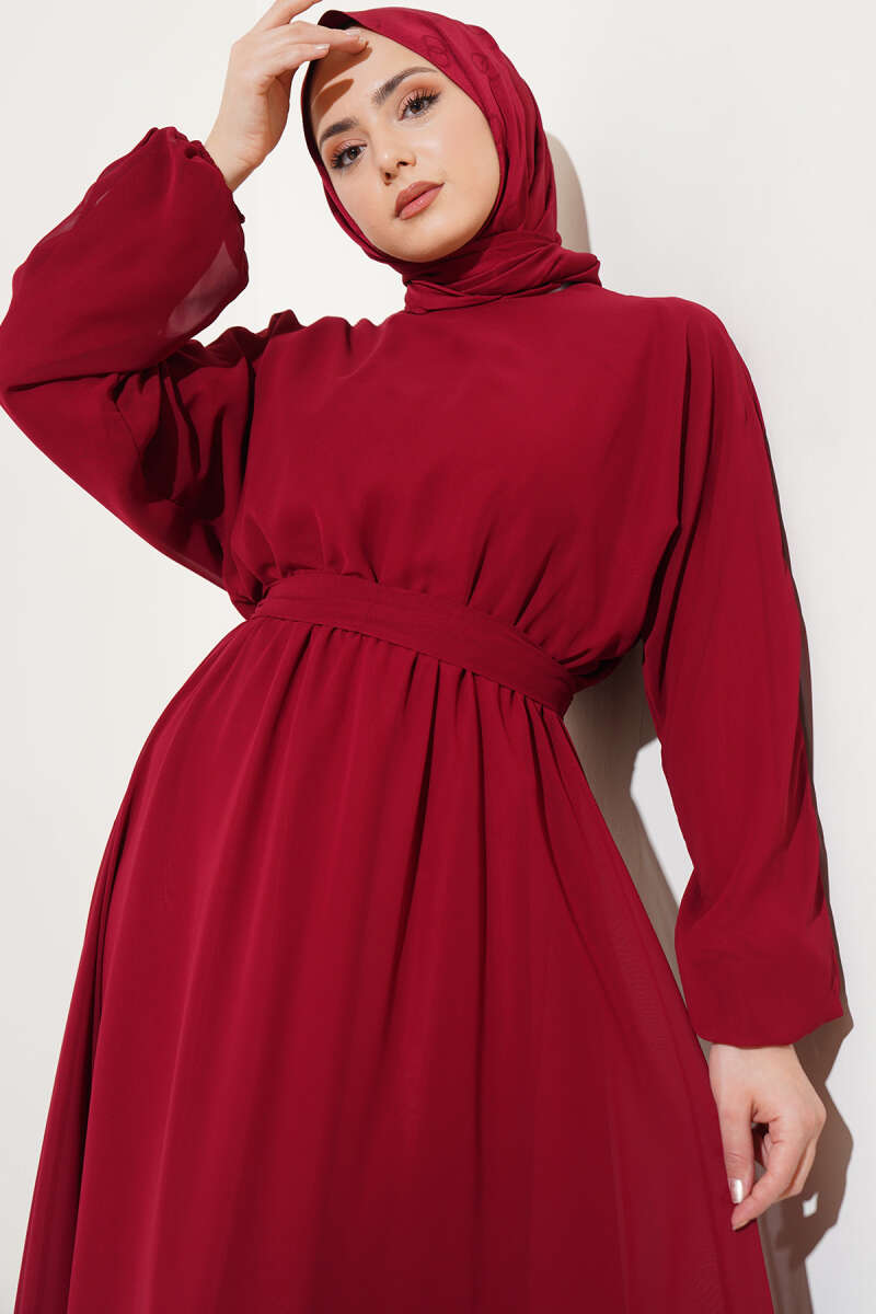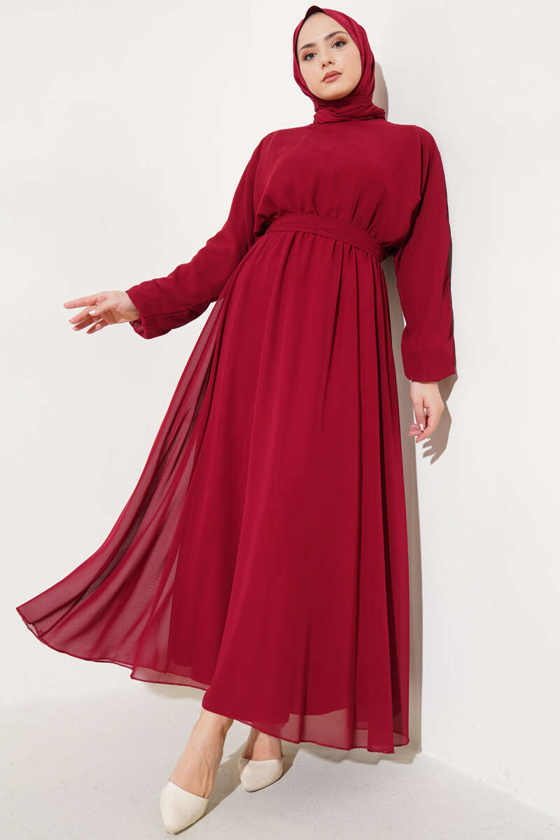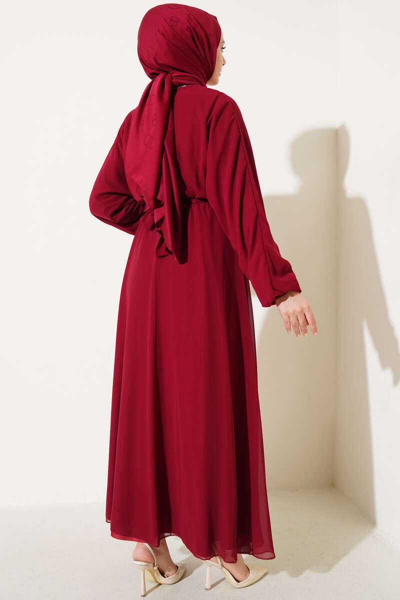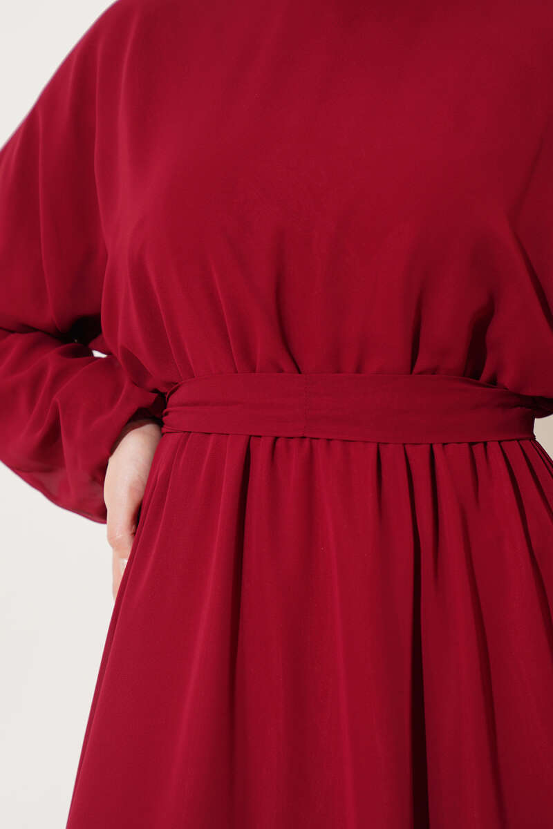 Pelerin Detaylı Pileli Triko Elbise Bordo