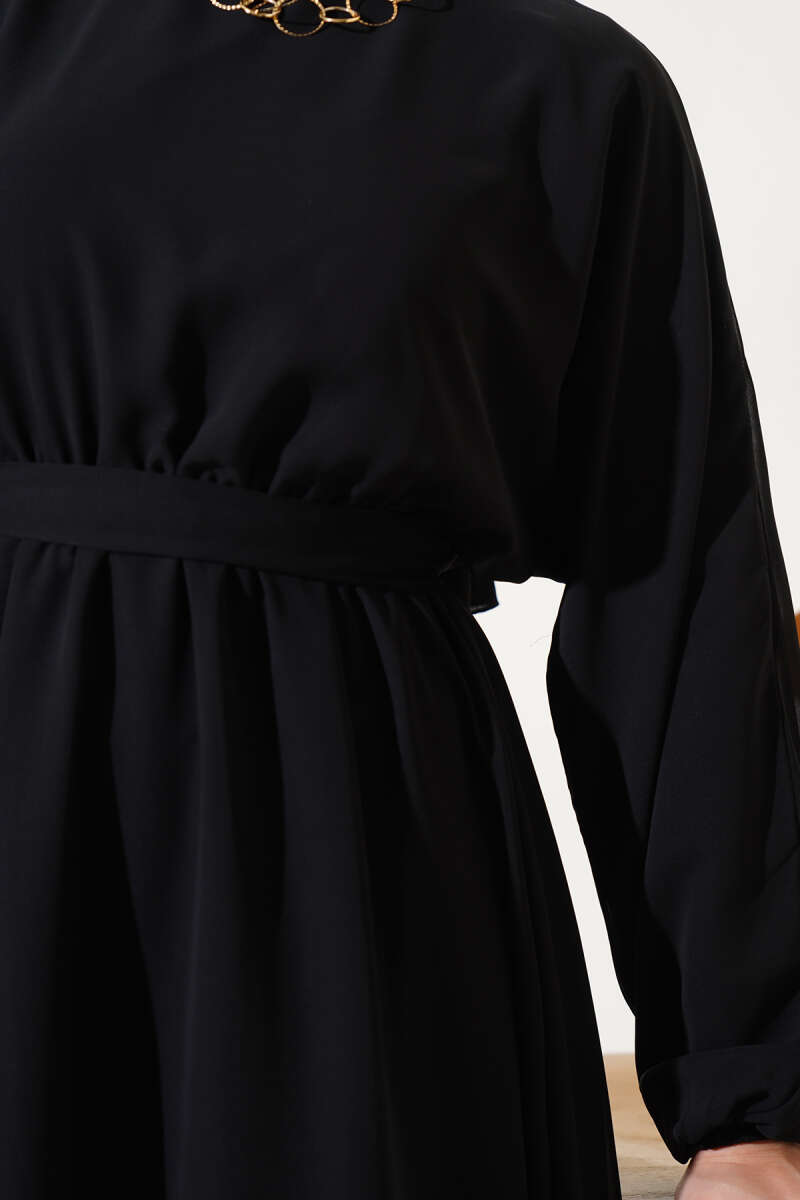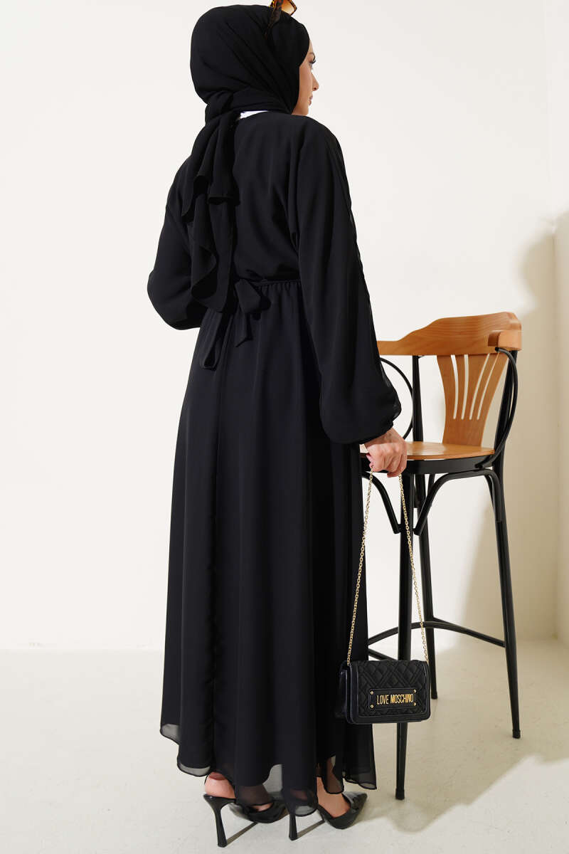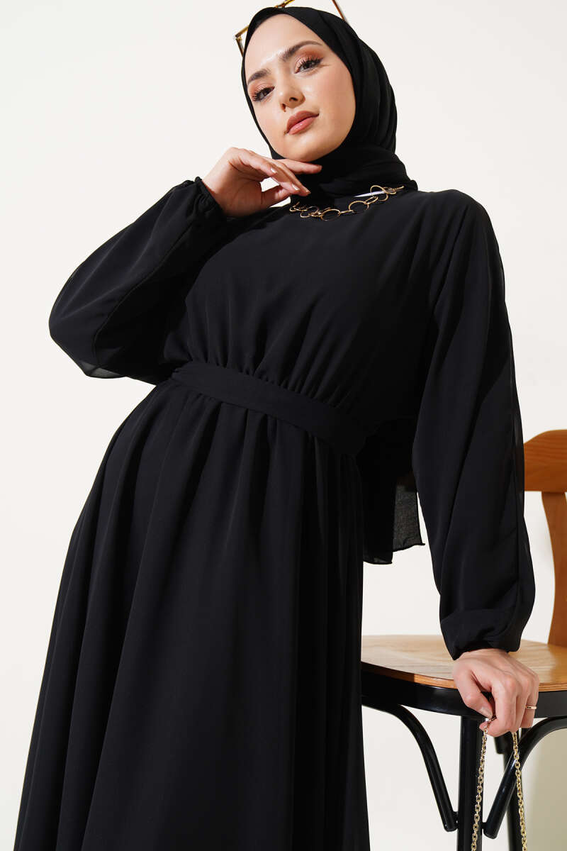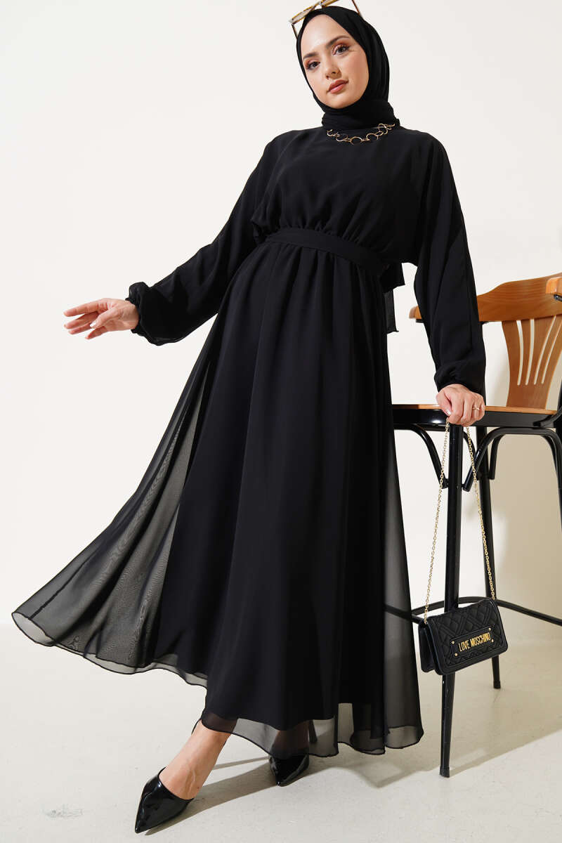 Bilek Bağlamalı Kuşaklı Abiye Elbise Siyah