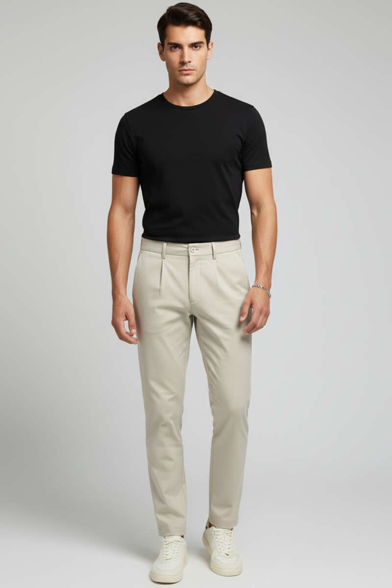 Düğmeli Gabardin Erkek Pantolon Vizon