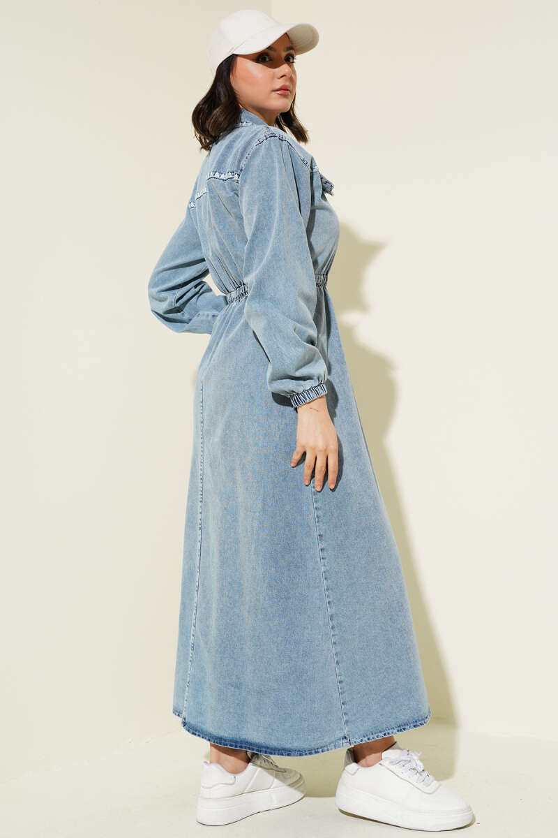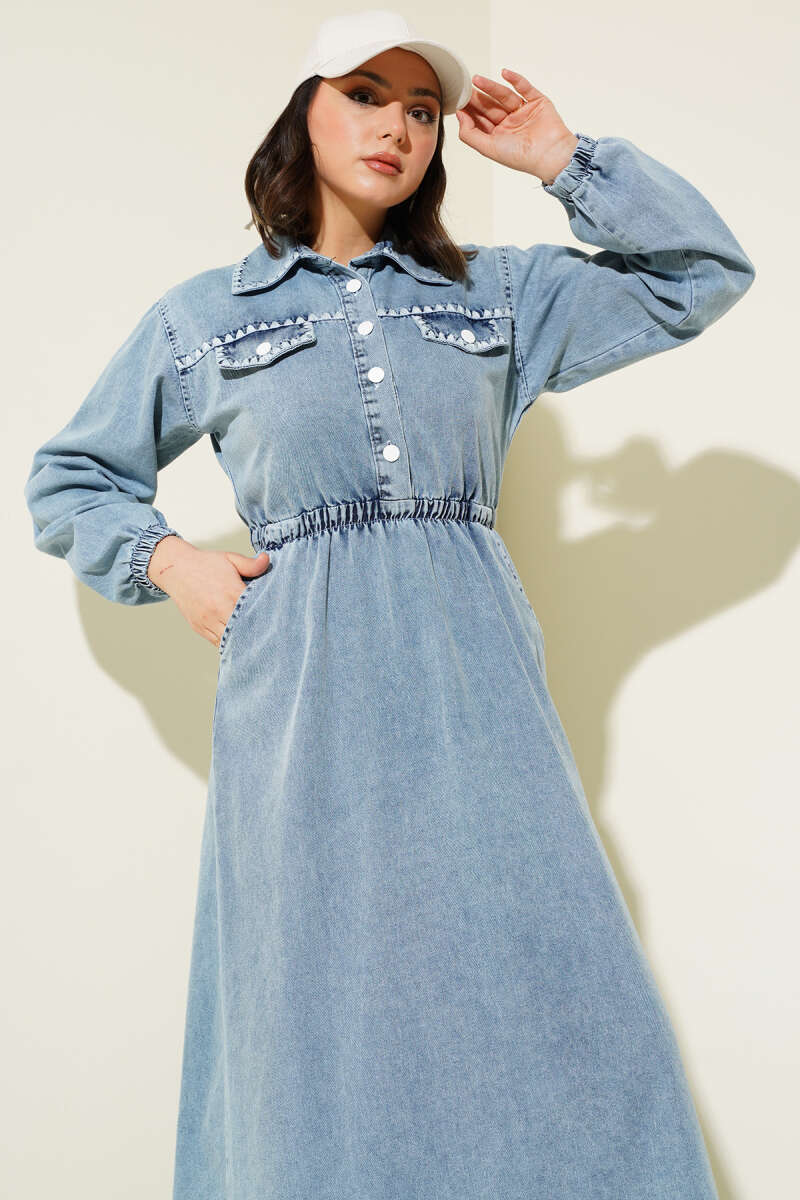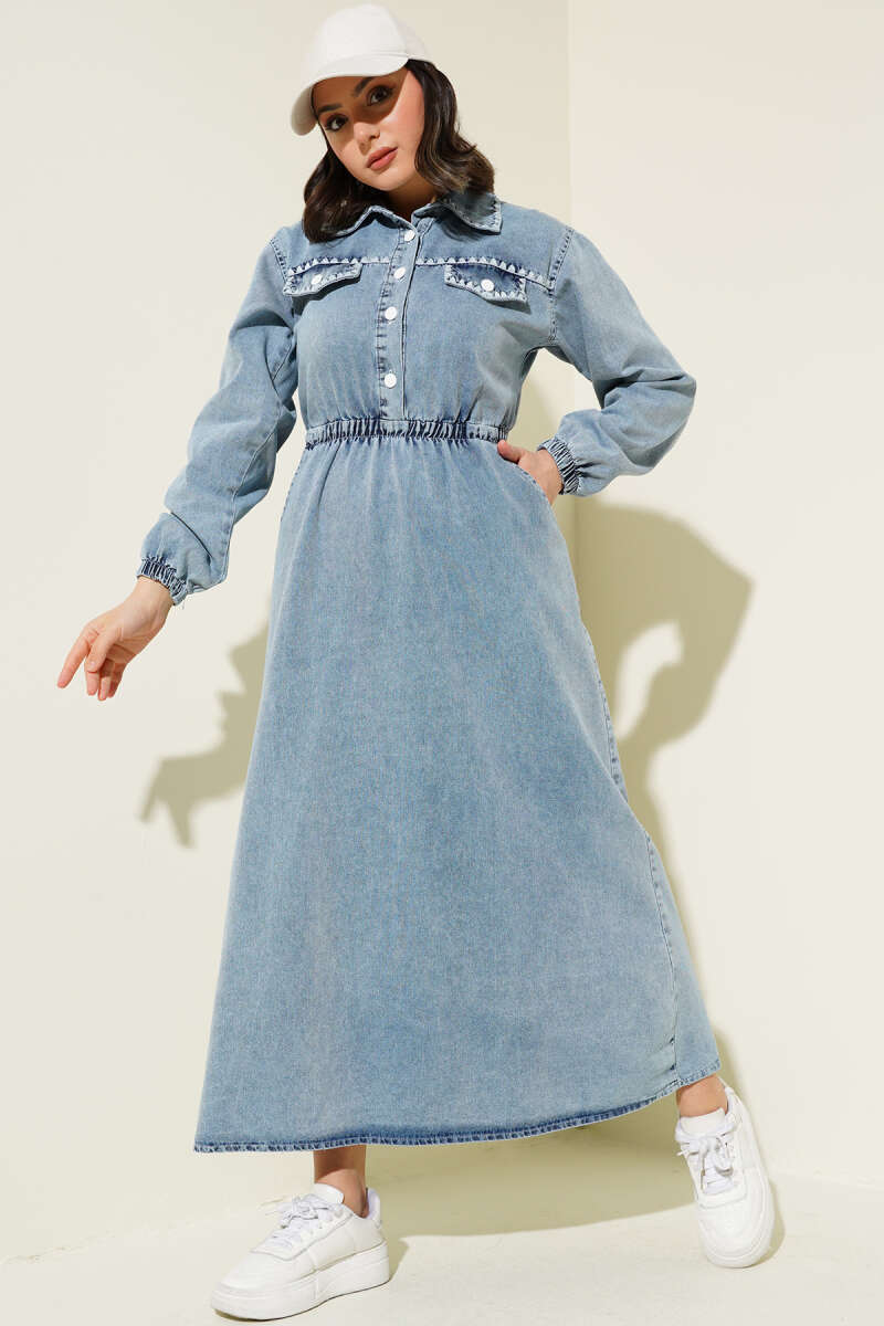 Kolları Fiyonk Detaylı Selanik Elbise Taş