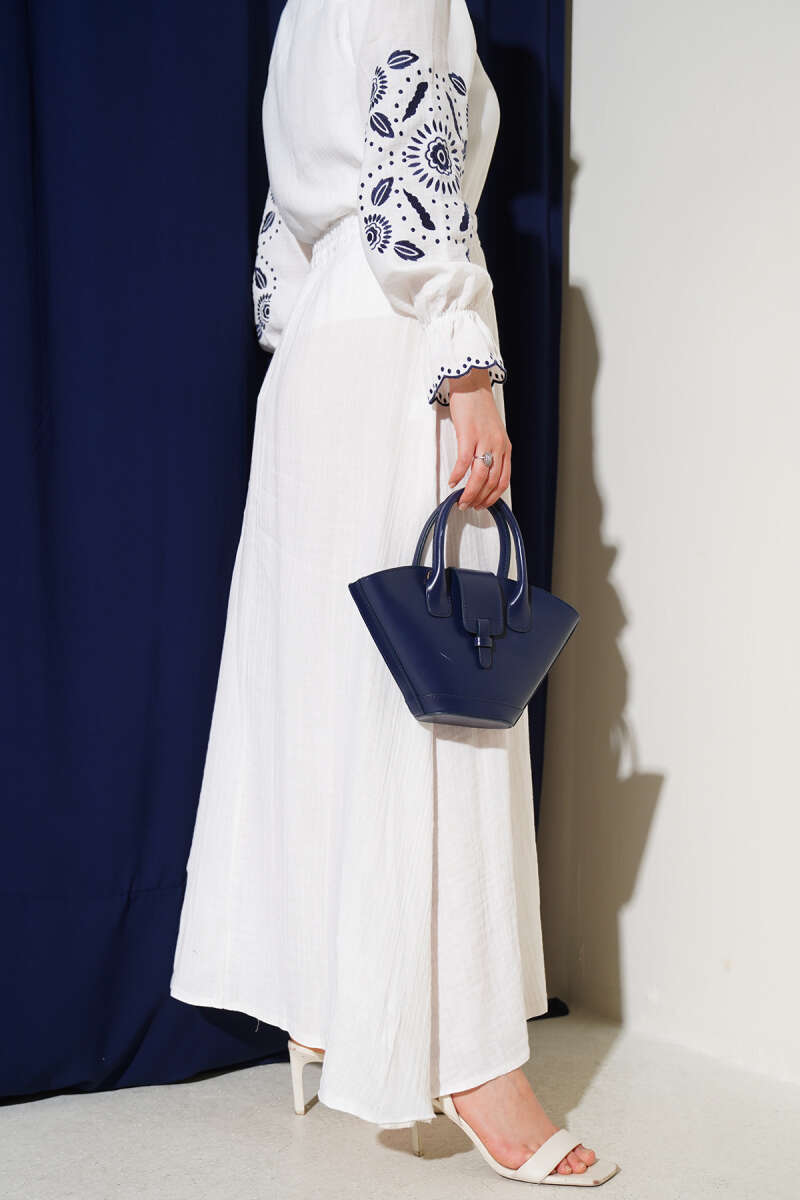 Bel Lastikli Müslin Etek Beyaz