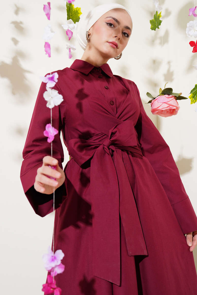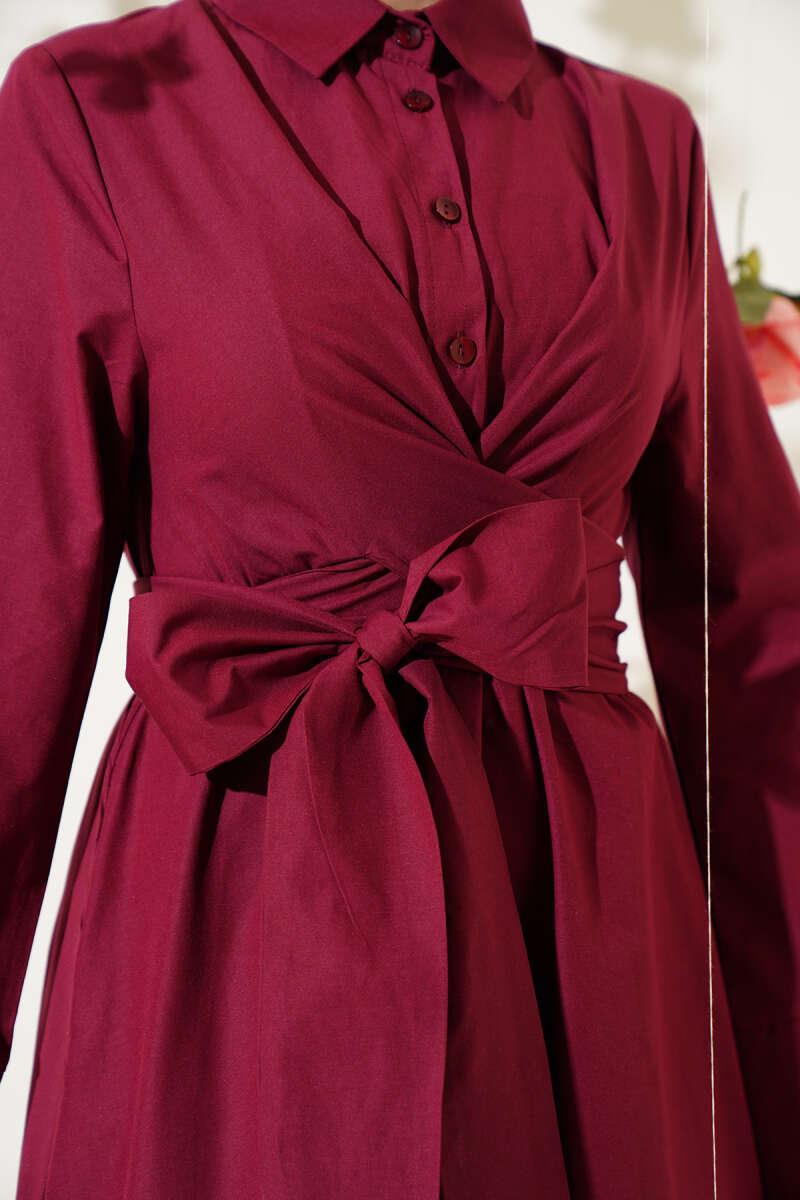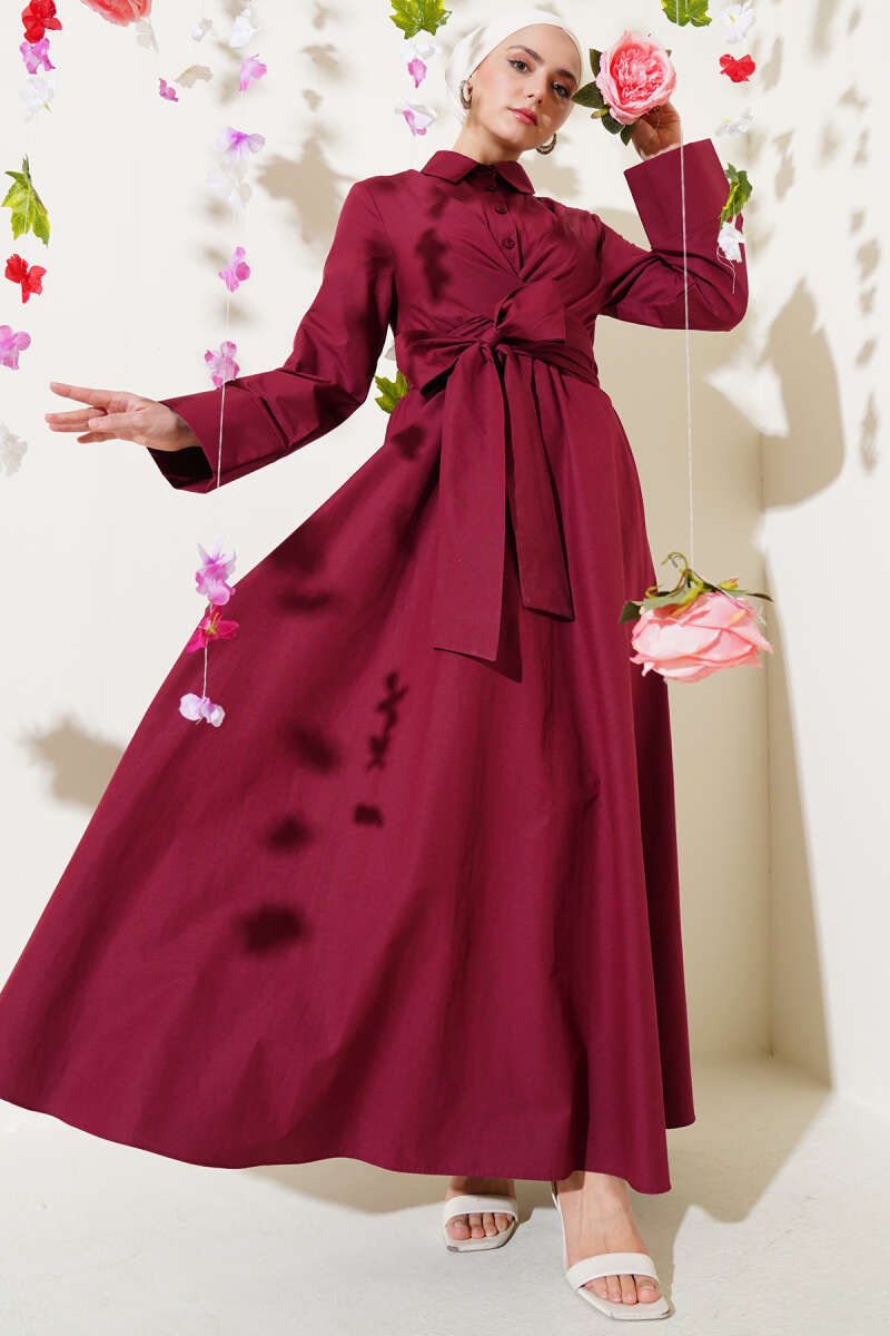 Bel Tünelli Gömlek Yaka Kot Elbise Füme