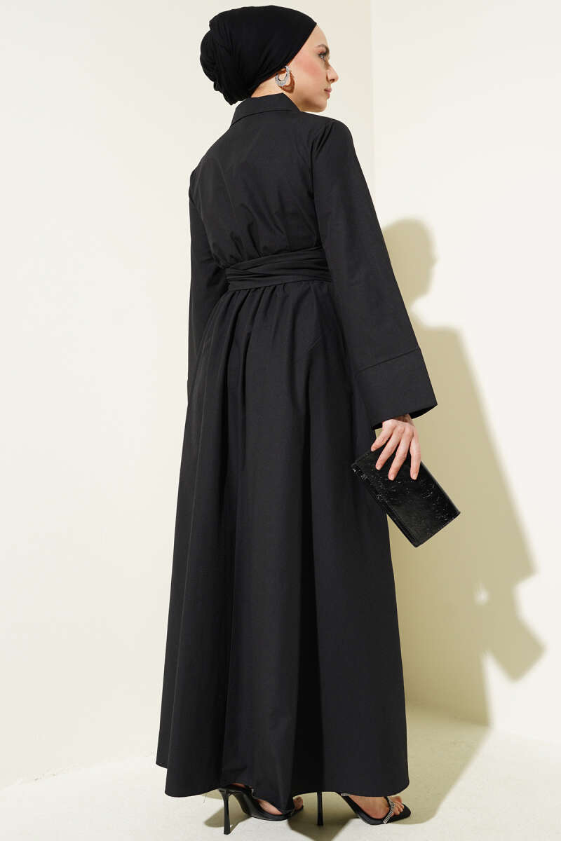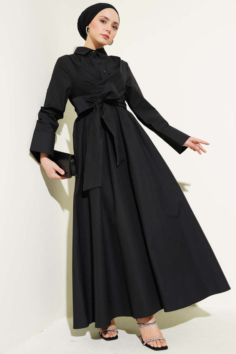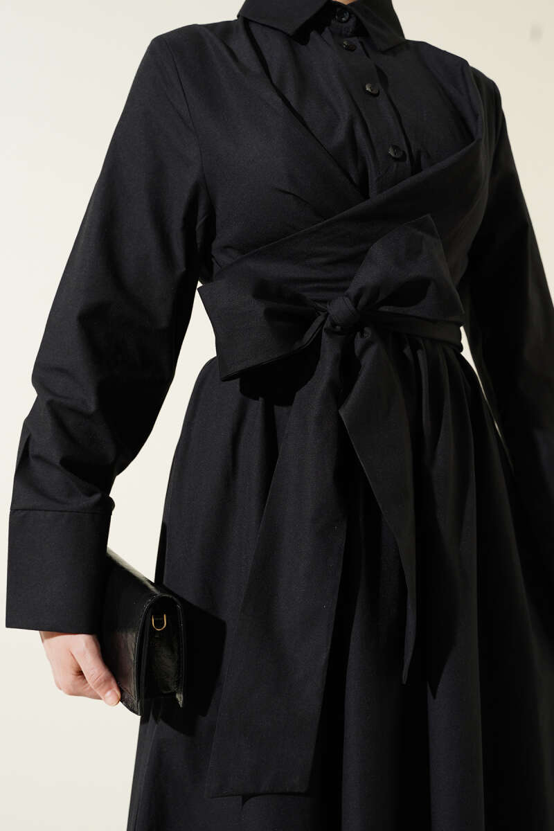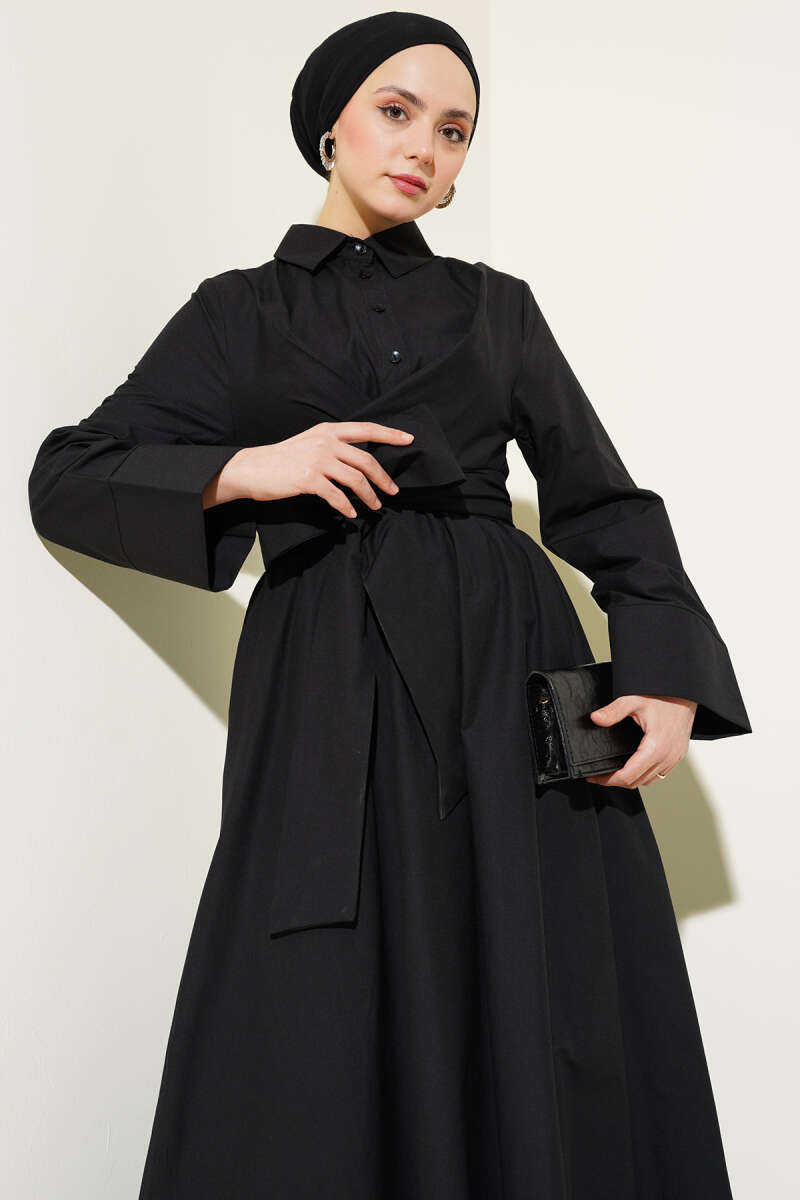 Pötikareli Yanları Büzgü Detay Siyah Tunik