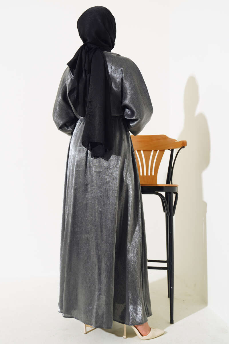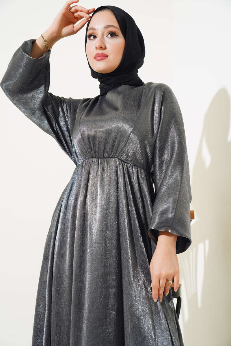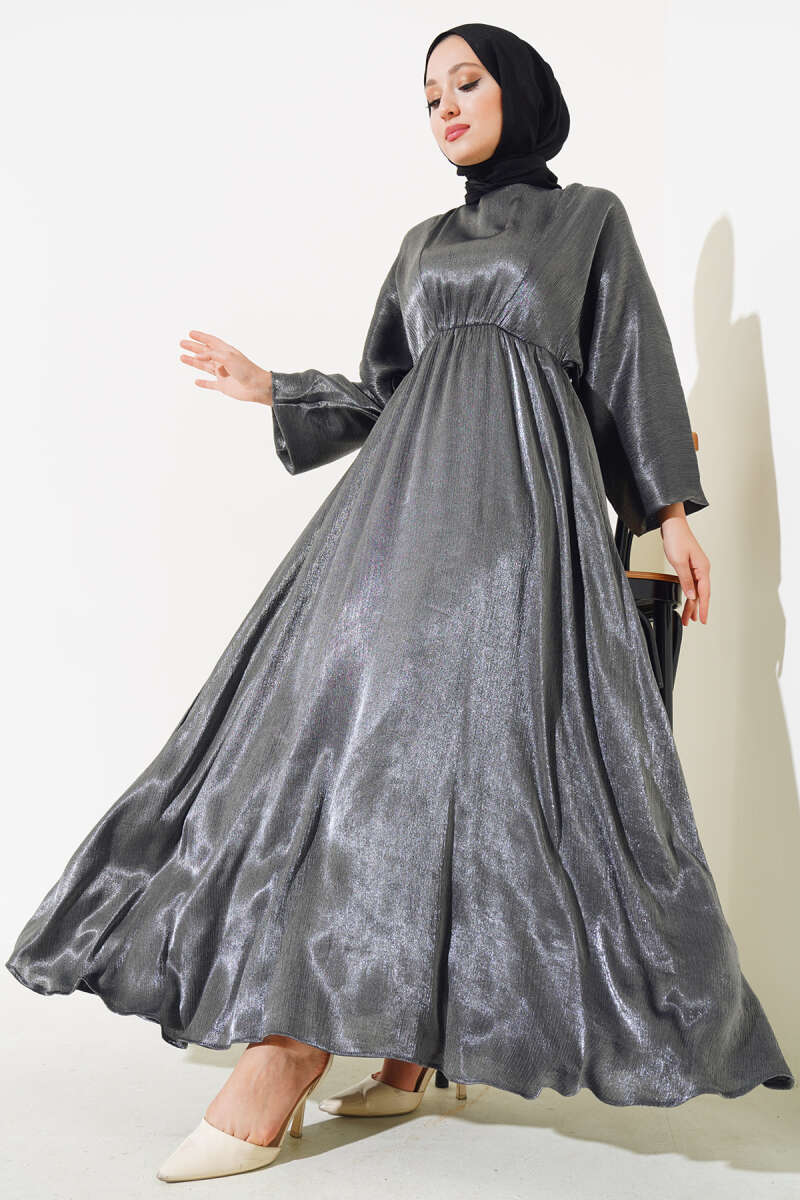 Bel Lastikli Fermuarlı Tensel Elbise Vizon