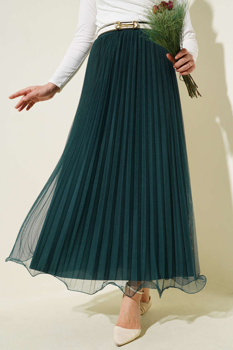 Loyşa Bel Lastikli Kemerli Etek Siyah