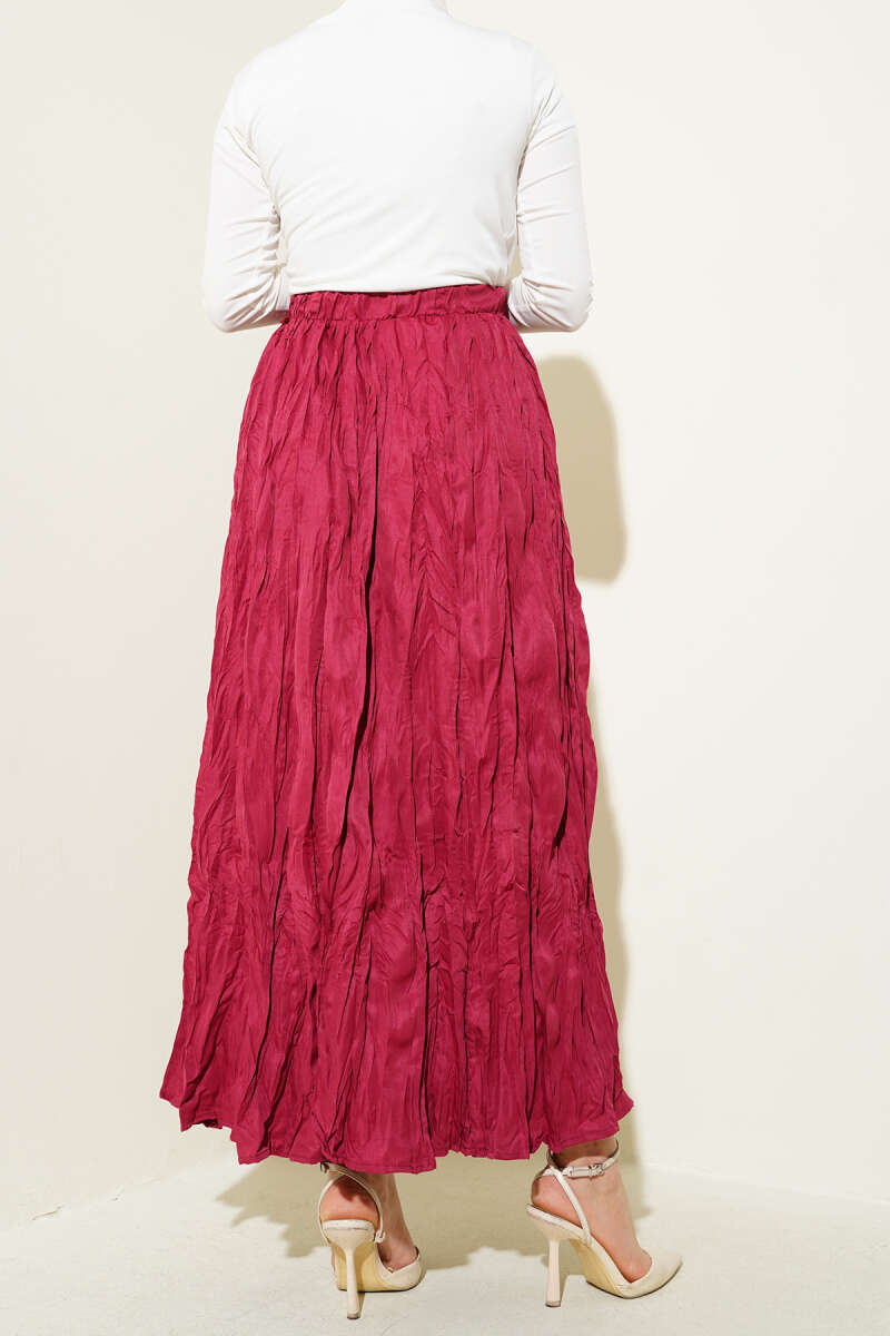 Saten Görünümlü Pileli Etek Kahve