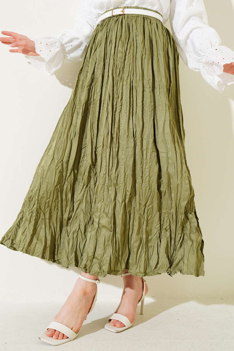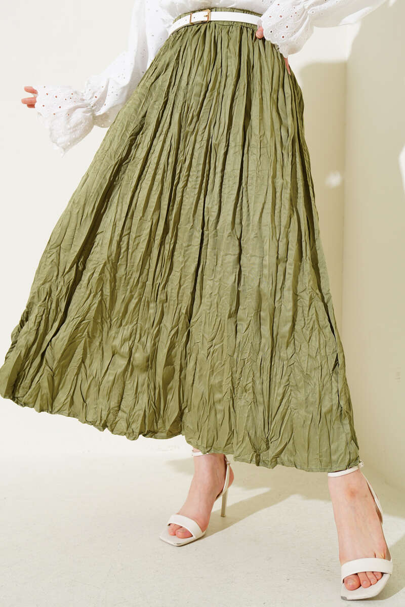 Loyşa Bel Lastikli Kemerli Etek Bej