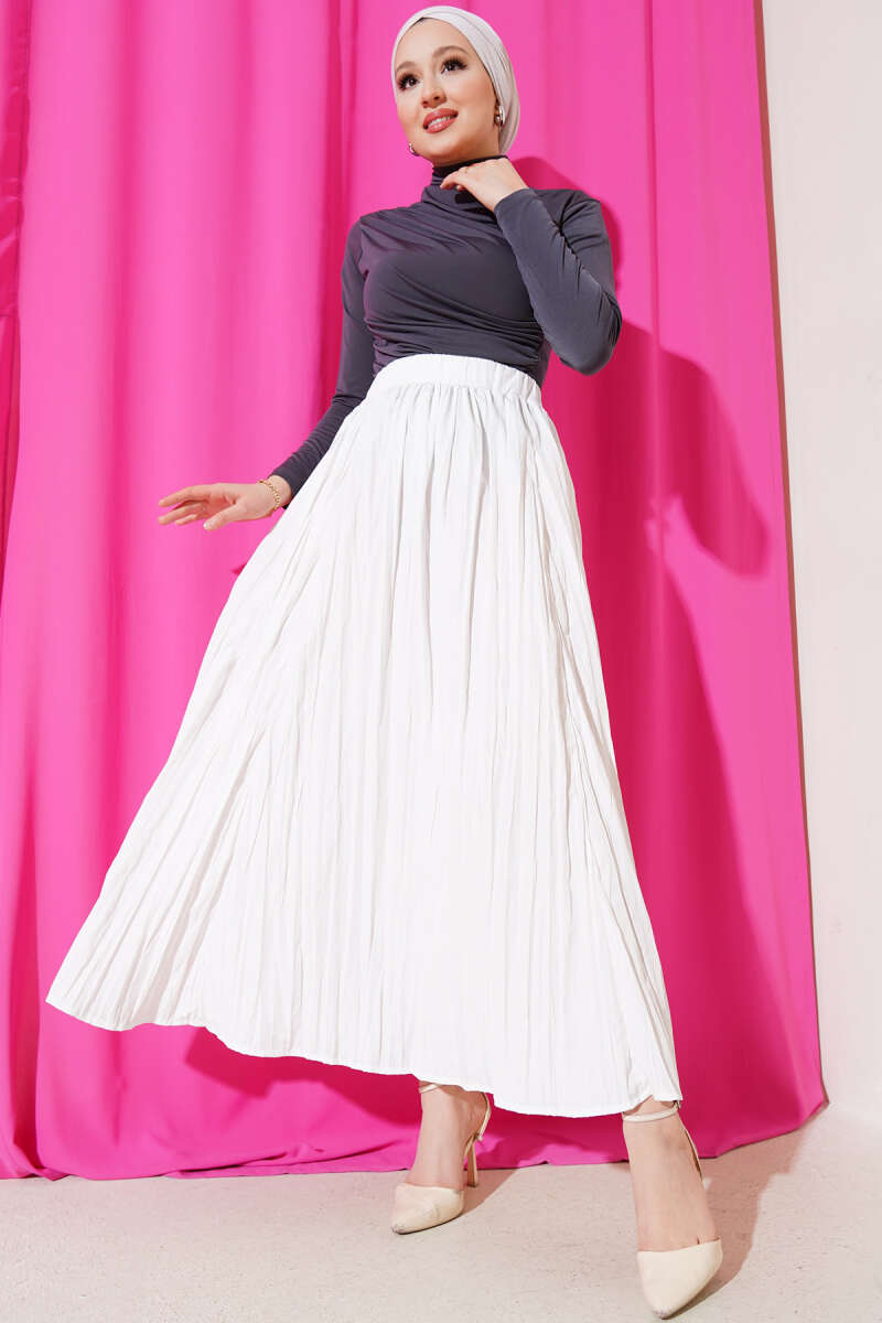 Saten Görünümlü Pileli Etek Lacivert