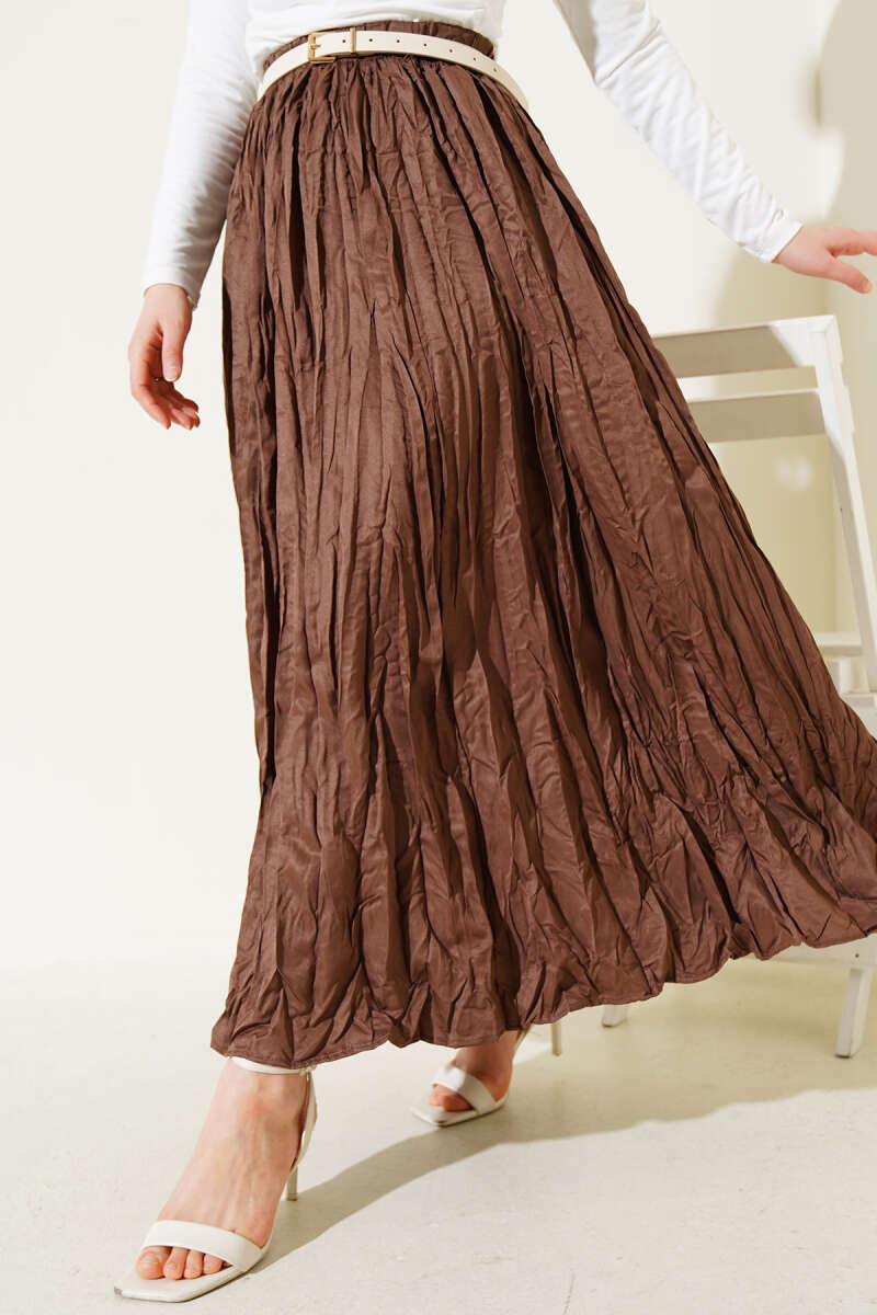Kemerli Ekose Desen Kloş Etek Lacivert