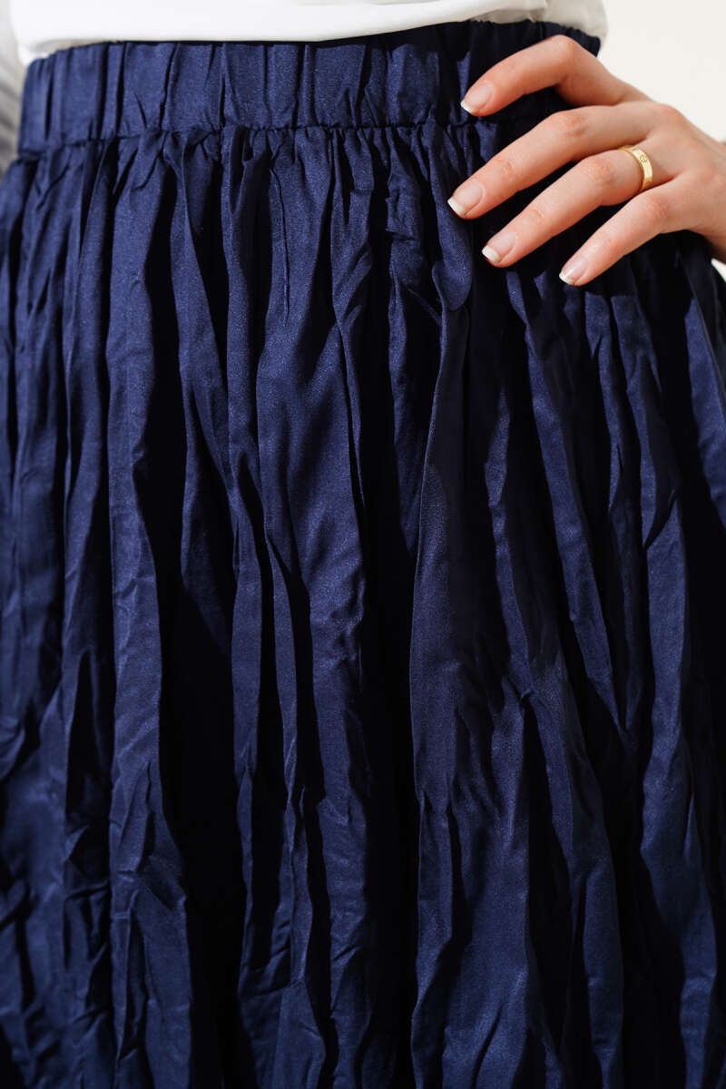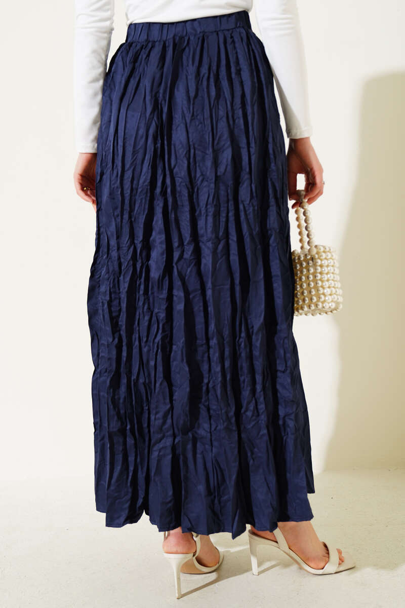 Kloş Ekose Desenli Kemerli Etek Lacivert
