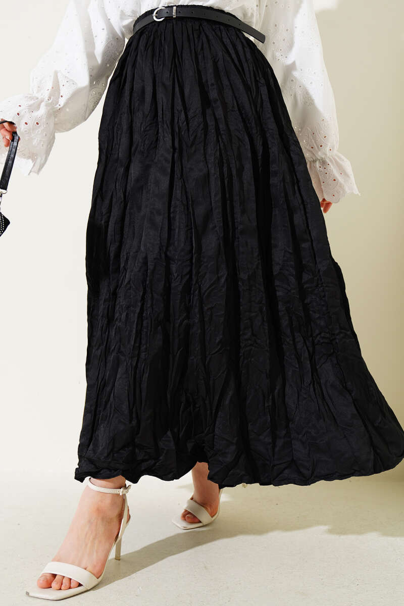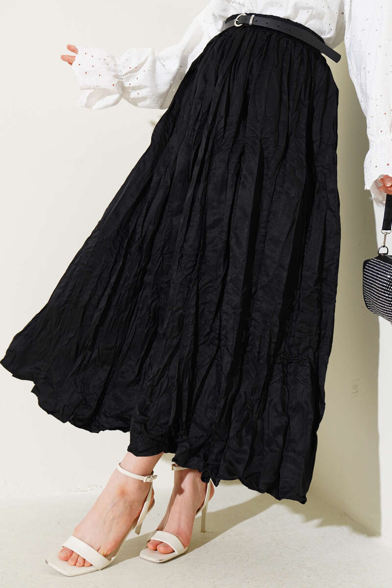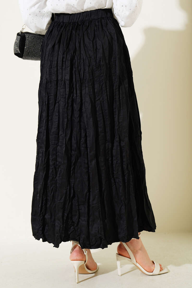 Fırfırlı Pileli Bel Lastikli Etek Lacivert