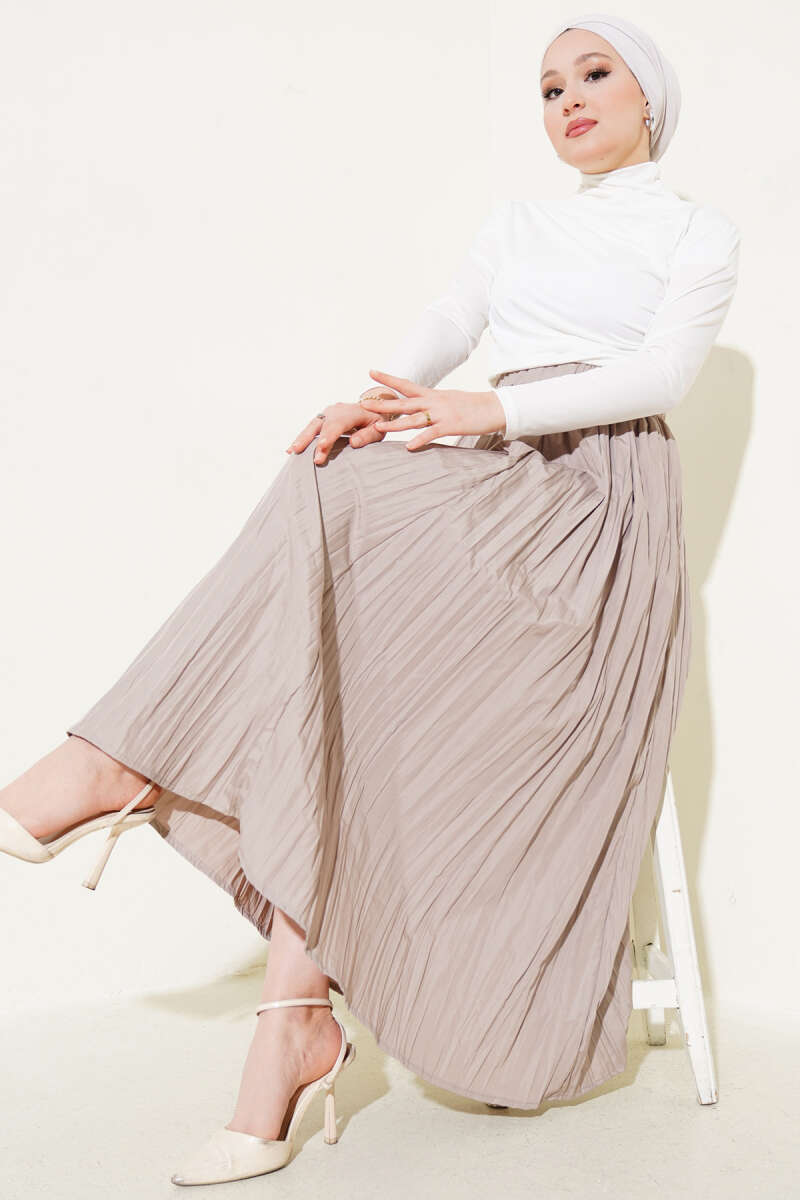 Oval Kemer Tokalı Ekoseli Etek Kahve