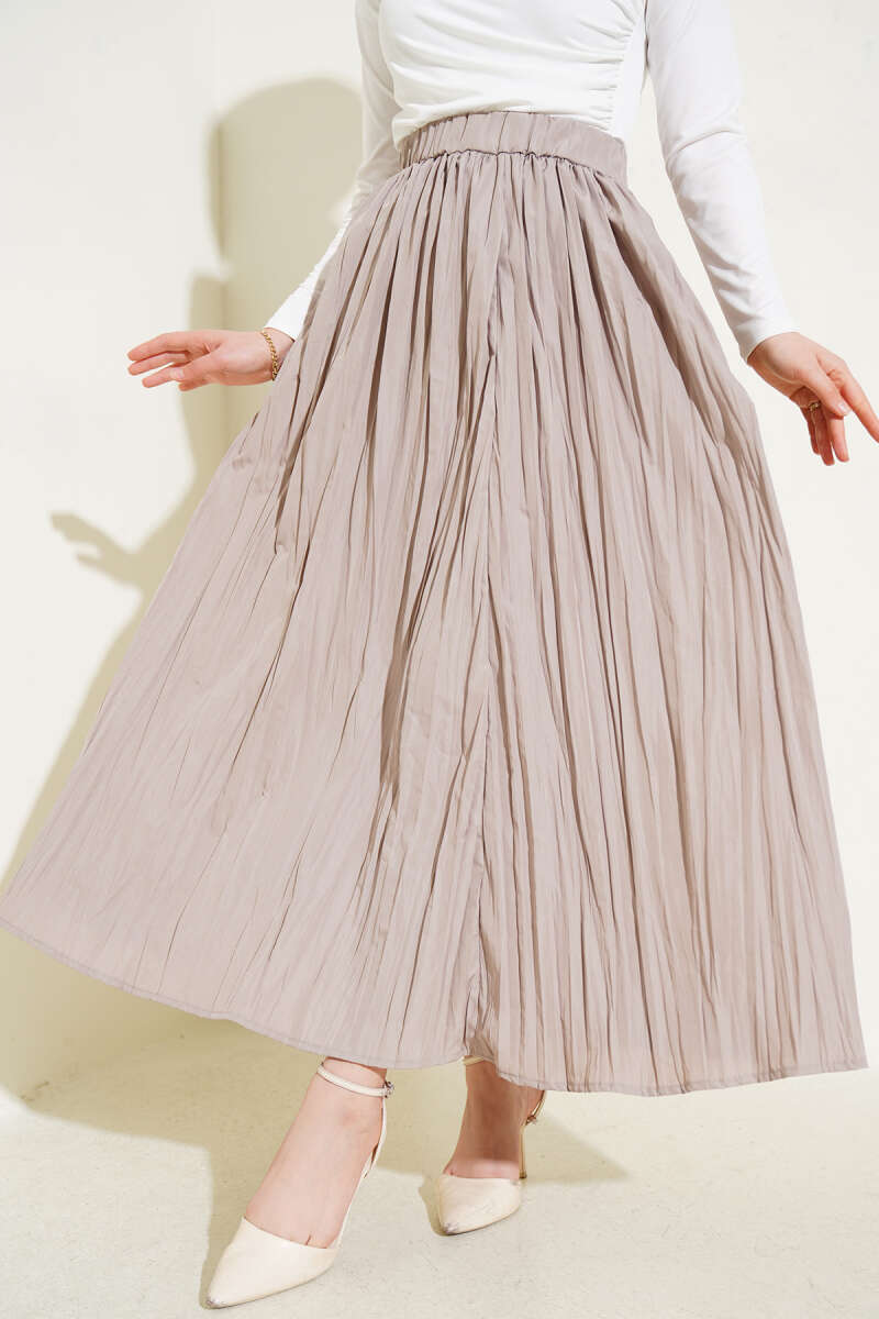 Oval Kemer Tokalı Ekoseli Etek Gri