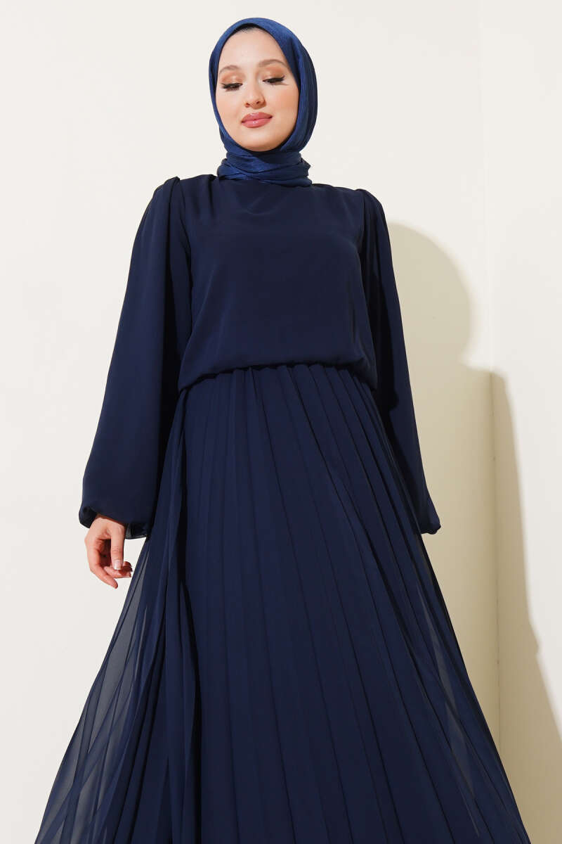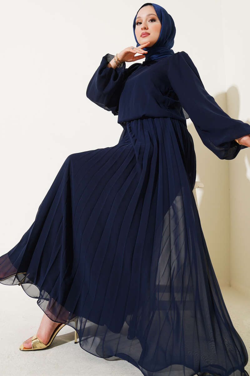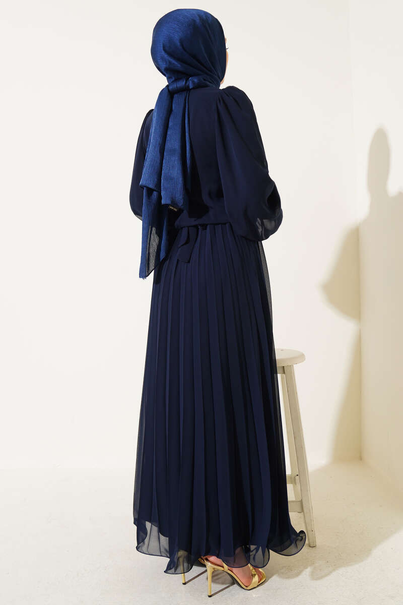 Bel Büzgü Detaylı Abiye Elbise Lacivert