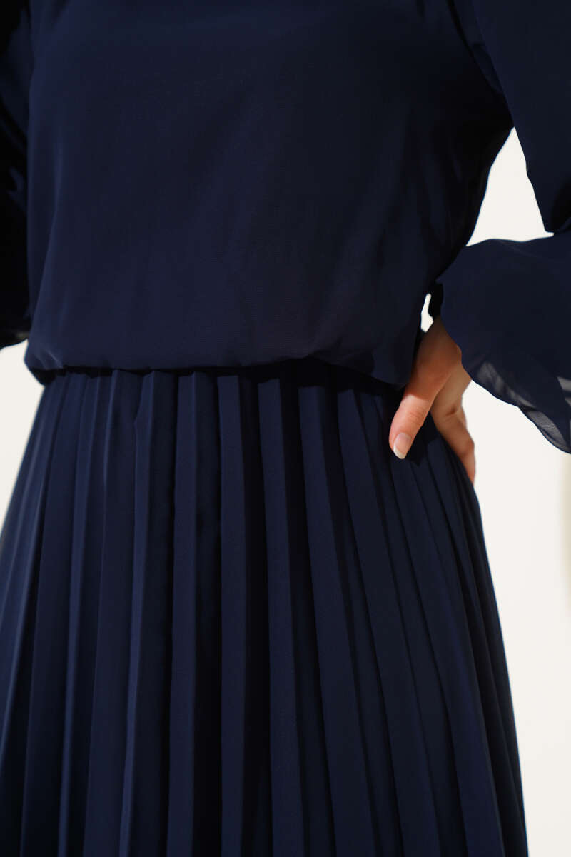 Bel Lastikli Pileli Şifon Elbise Bordo