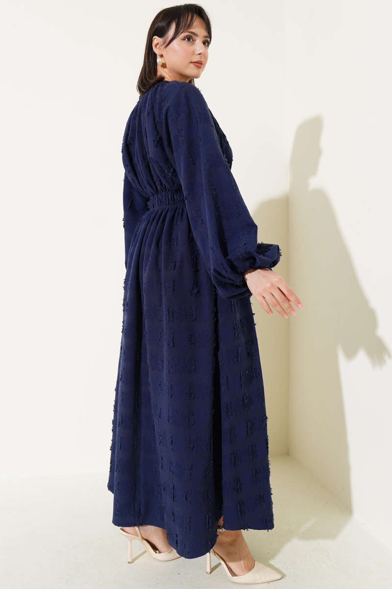 Düğmeli Tensel İnce Kemerli Elbise Lacivert