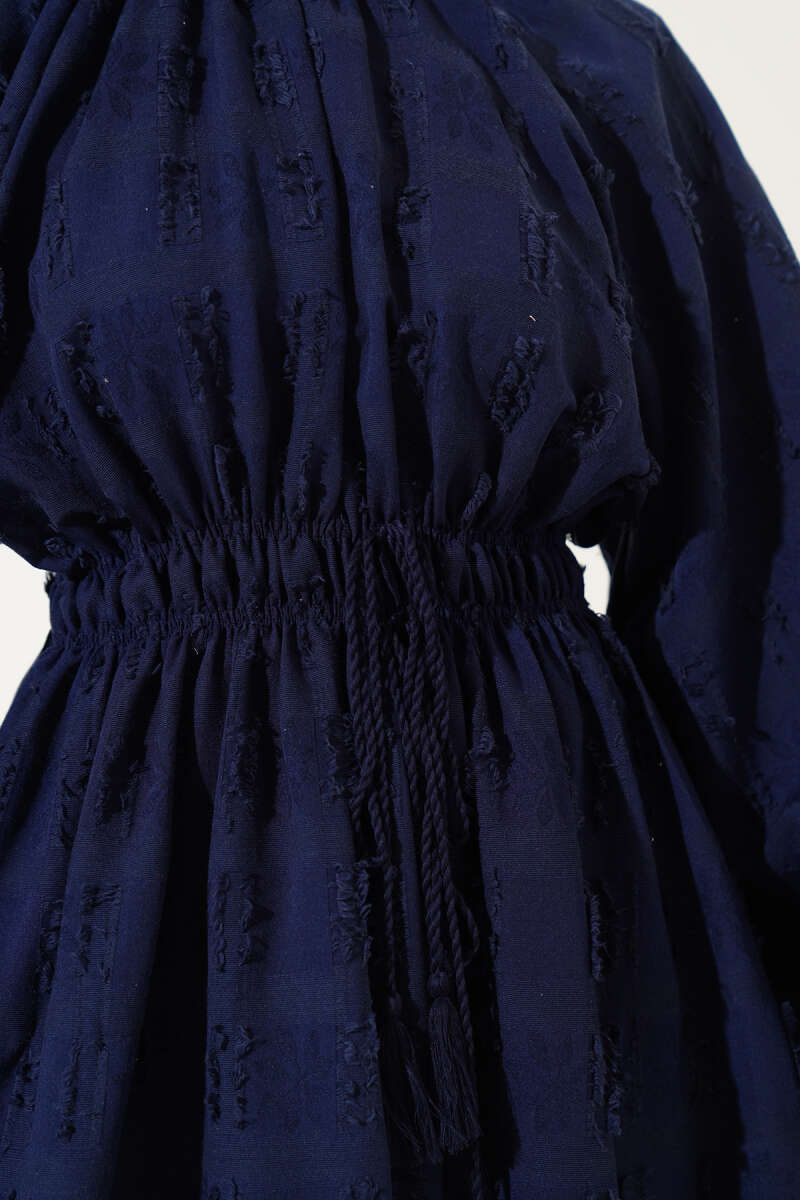 Scuba Pens Detaylı Kemerli Elbise Lacivert