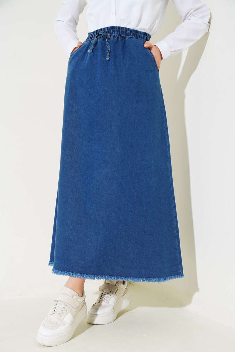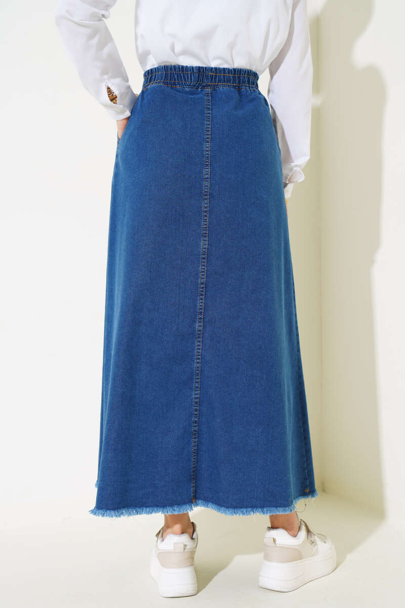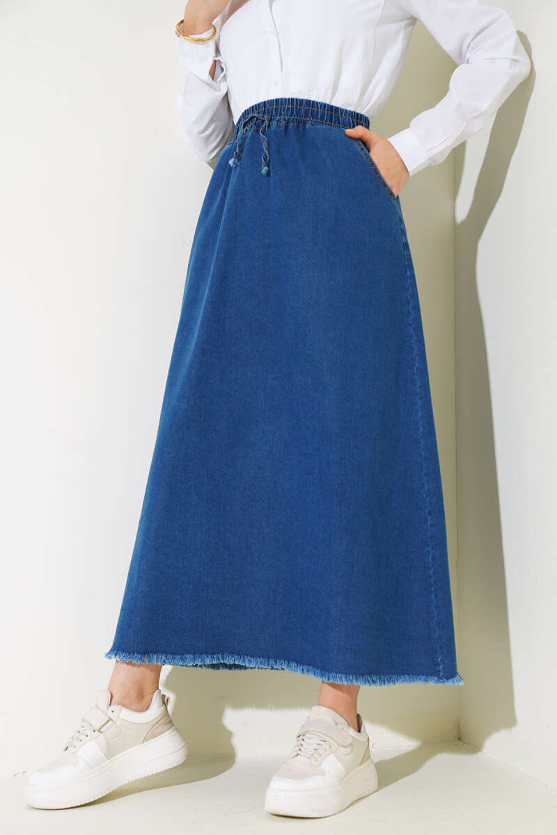 Kemer Aksesuarlı Ekoseli Etek Haki