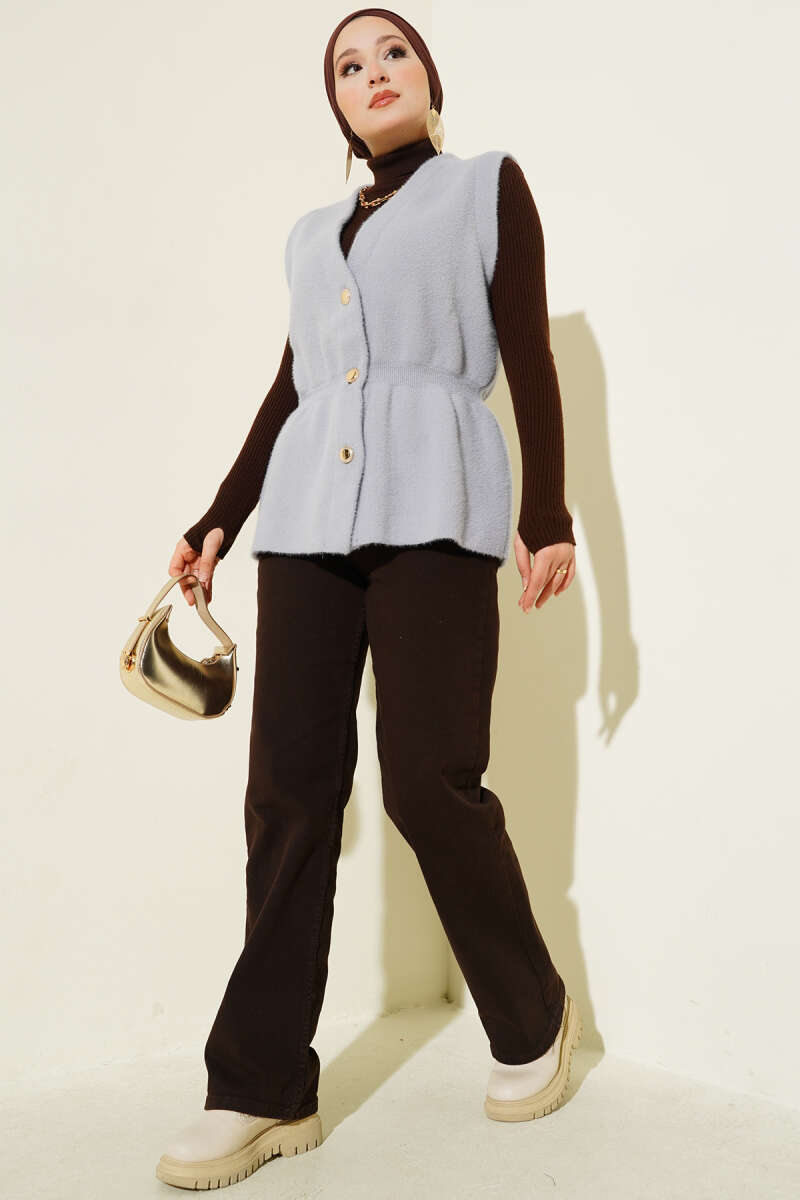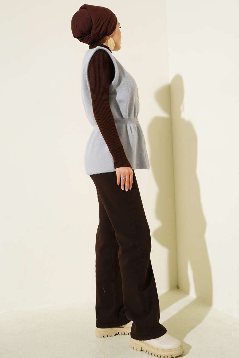 Boydan Düğmeli Sepet Örgü Uzun Hırka Vizon