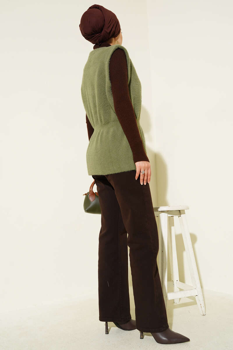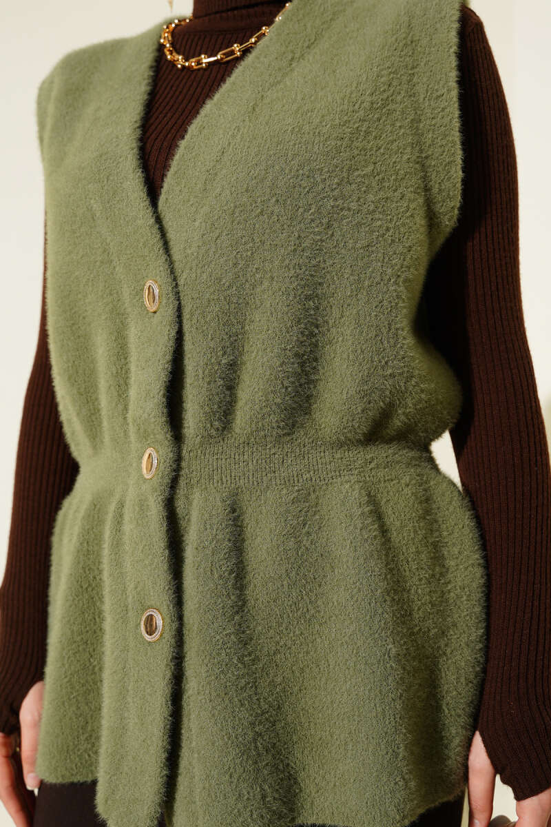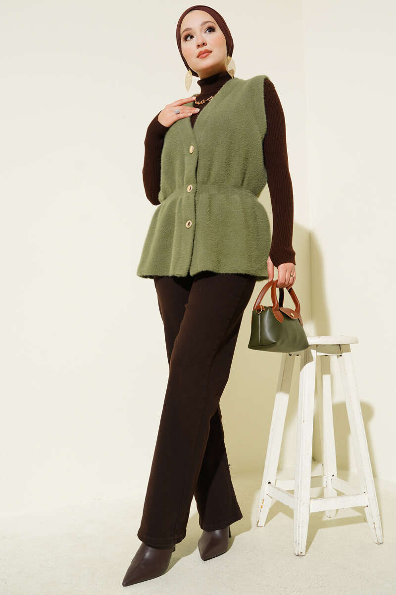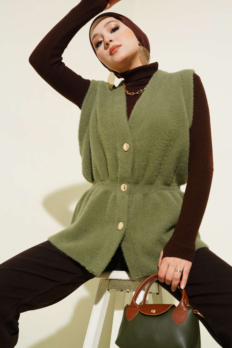 Gold Düğmeli Kemerli Sakallı Yelek Kahve